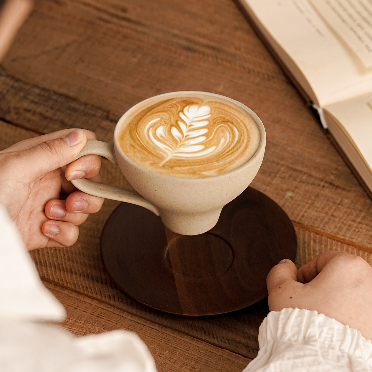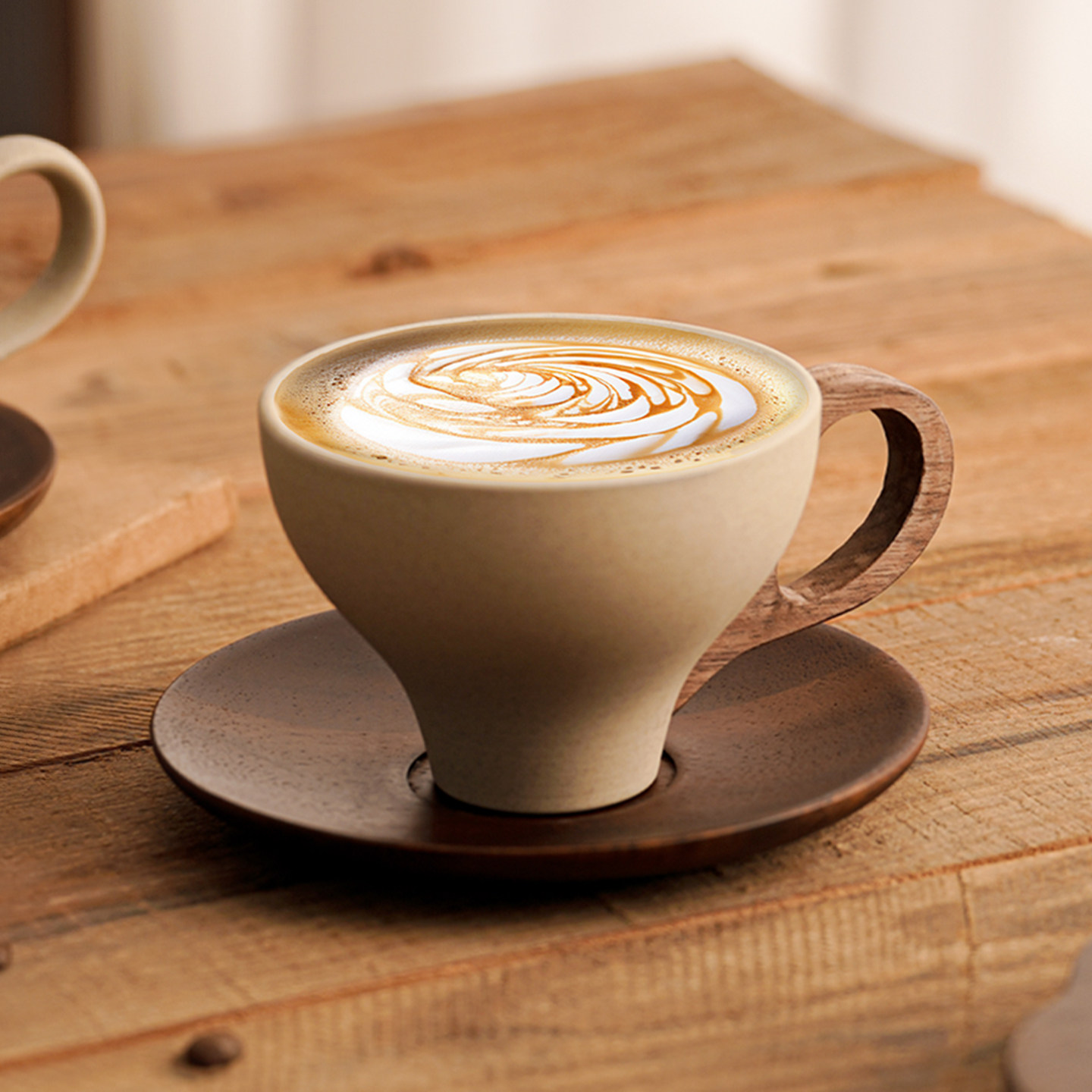 复古陶土咖啡杯胡桃木垫套装