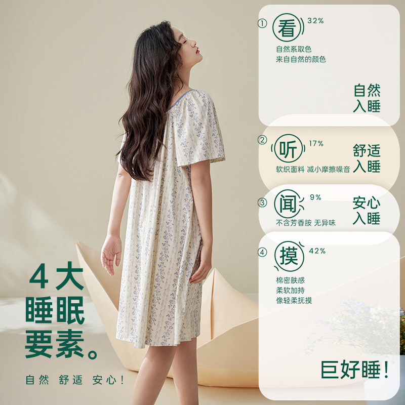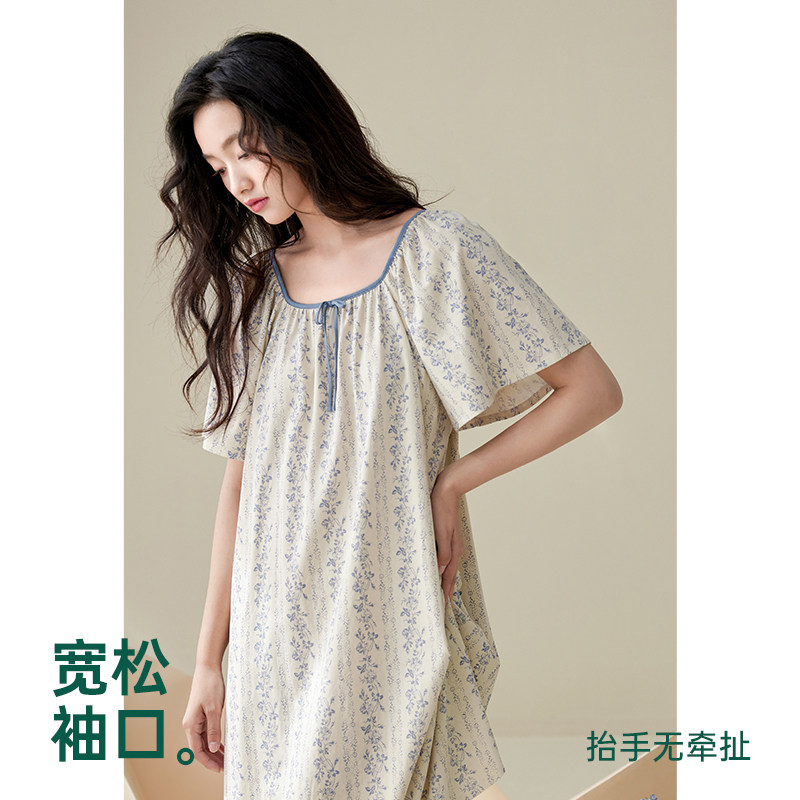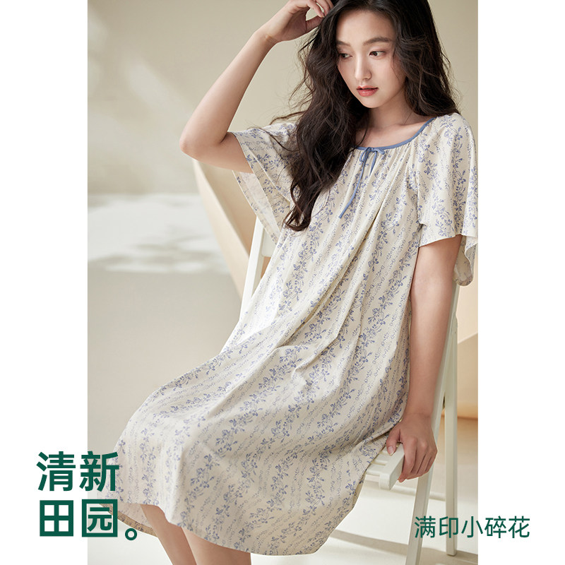 安之伴睡衣女夏季短袖睡裙2025年新款纯棉碎花连衣裙可外穿家居服