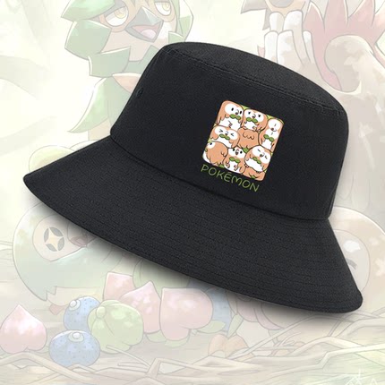 精灵宝可梦神奇宝贝木木袅卡通夏季联名男女情侣防晒盆帽渔夫帽子