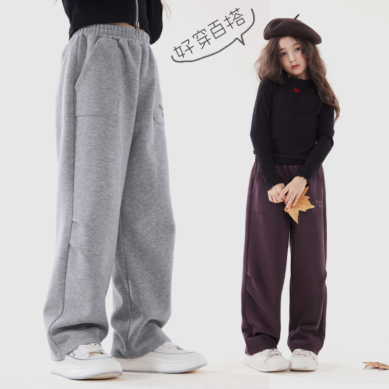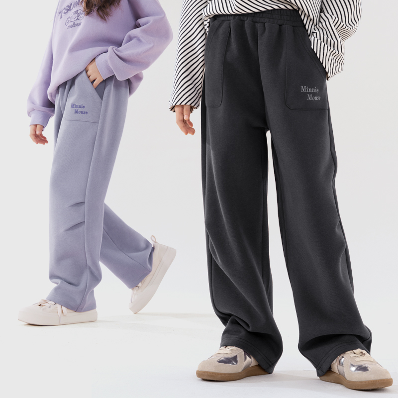 迪士尼女童裤子25秋冬儿童运动裤卫裤休闲直筒工装裤一体绒加厚款
