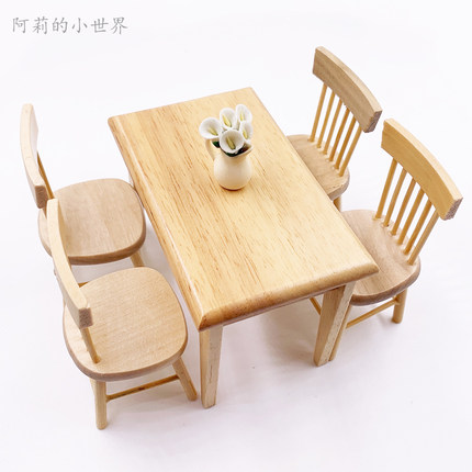 1:12娃娃屋dollhous微缩食玩迷你家具模型ob11 bjd餐桌椅子五件套