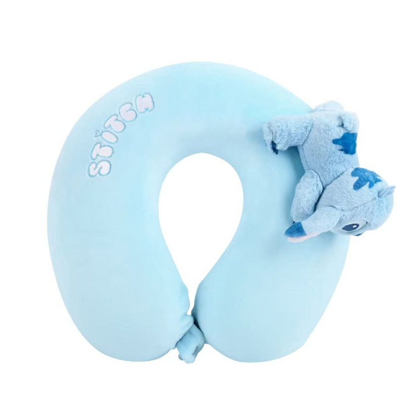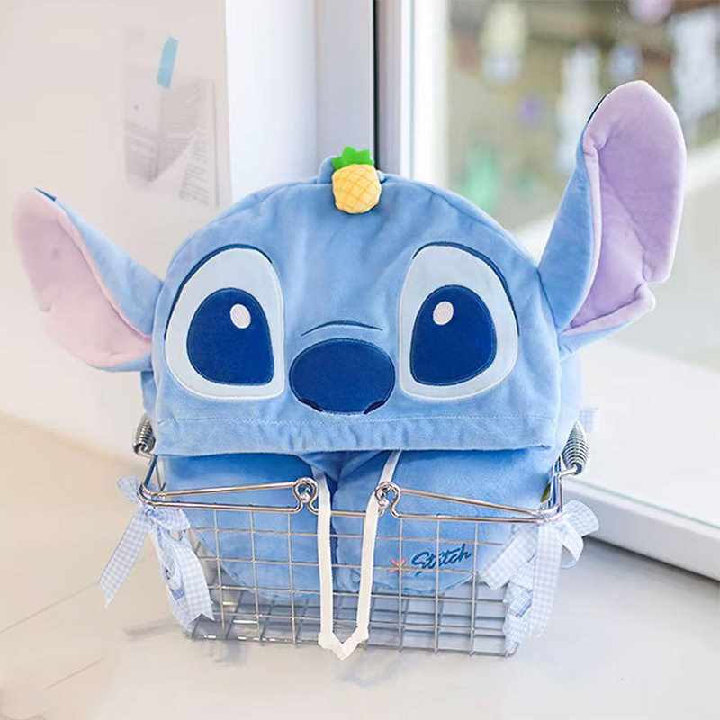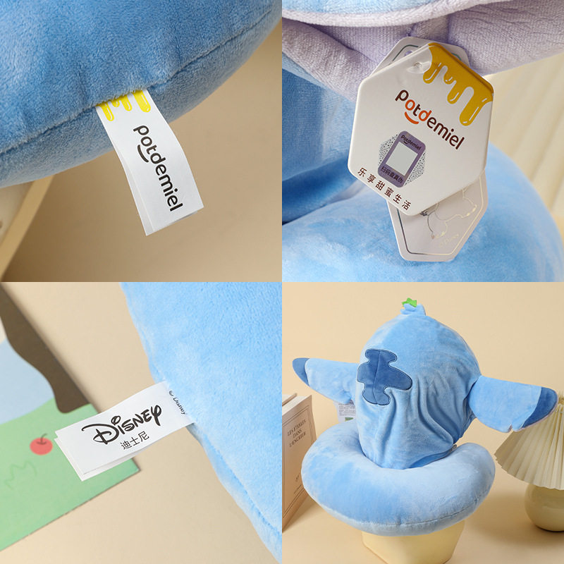 迪士尼正版史迪奇连帽U形枕头护颈枕连帽毛毯毛绒毛绒出行抱枕