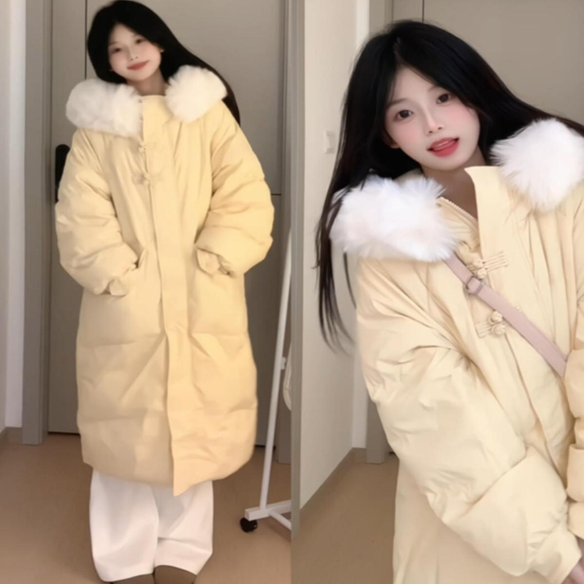 羽绒服中长款棉服女2024新款冬季韩系宽松过膝大毛领加厚棉袄外套