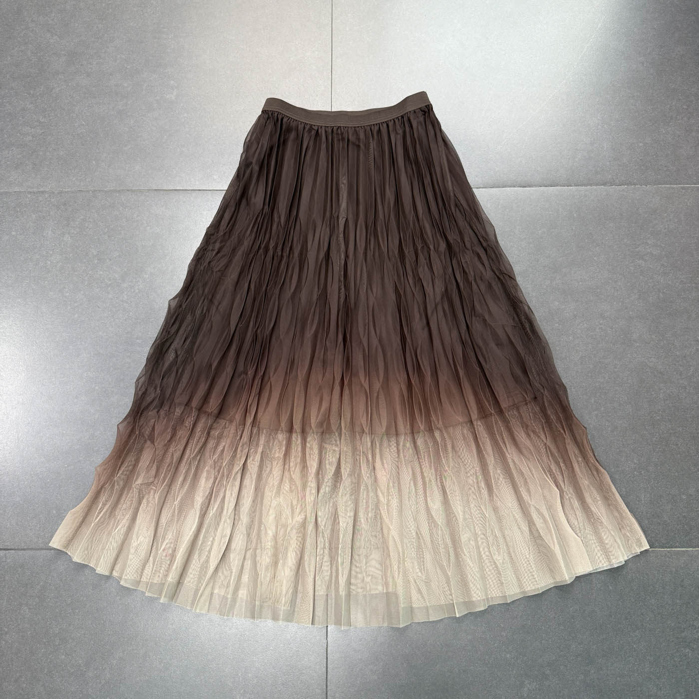 夏季新款~渐变纱裙 气质百搭 渐变艺术褶皱松紧腰半身裙 气质半裙