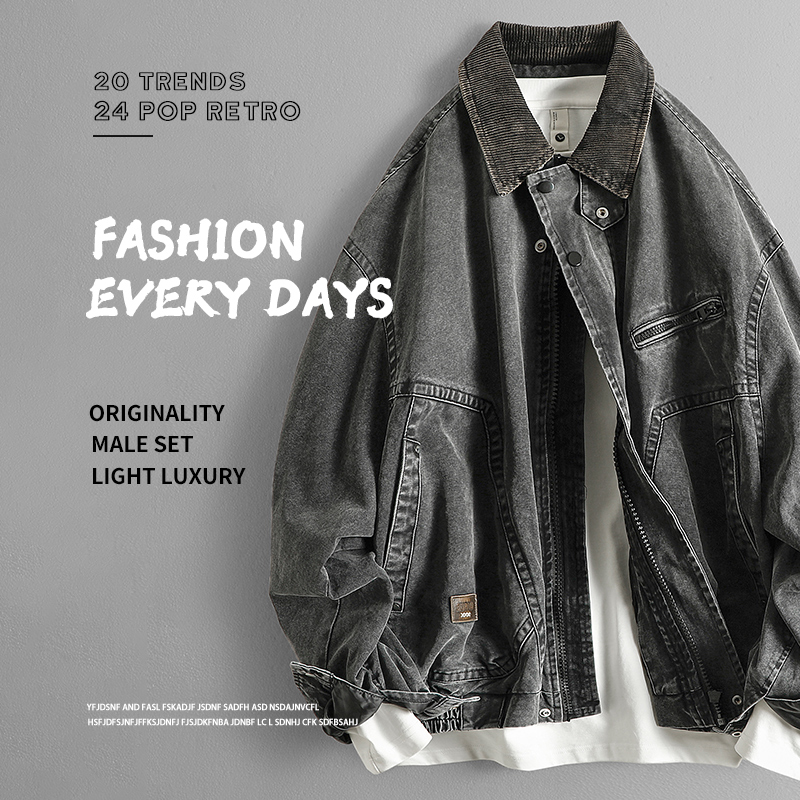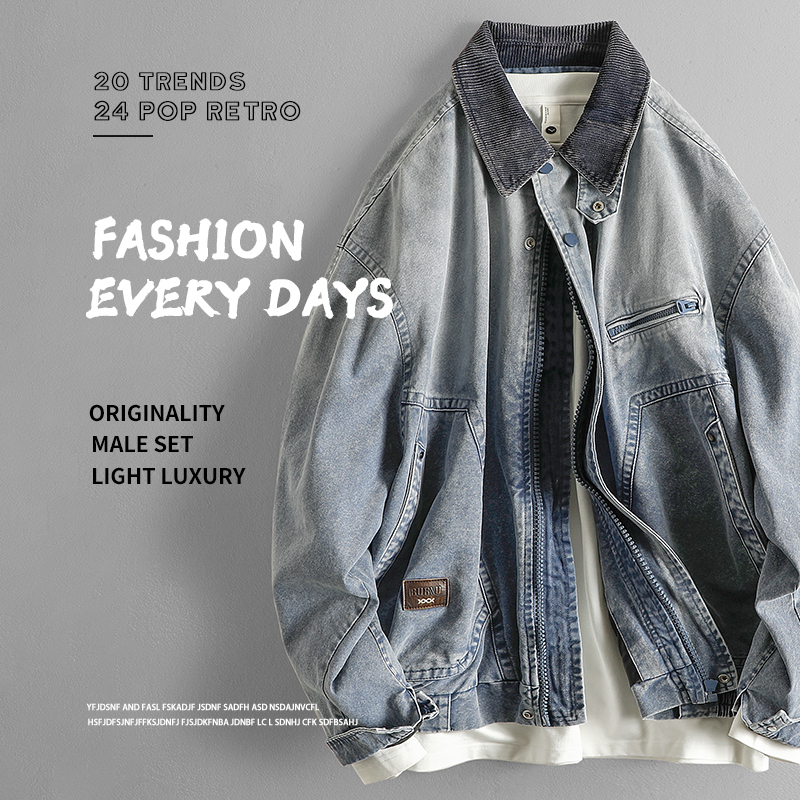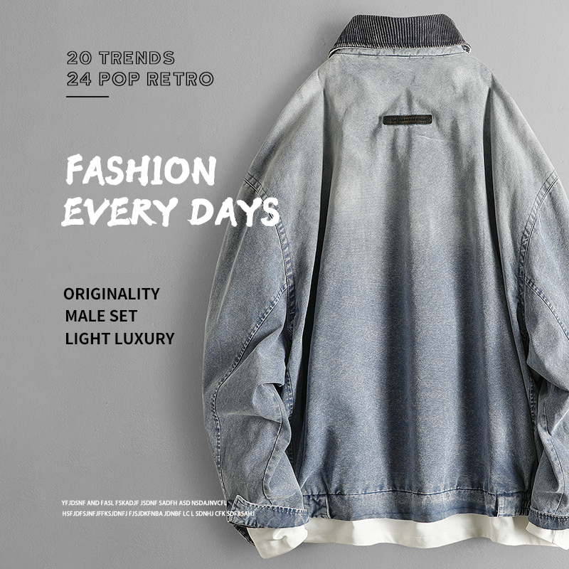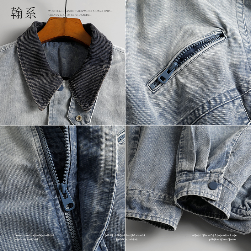 老钱风时髦复古翻领牛仔外套男女美拉德撞色工装短款小众水洗夹克