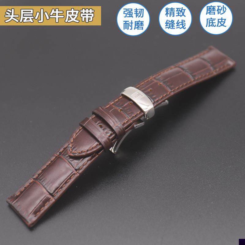 适用于天梭表带力洛克真皮T006/T41蝴蝶扣配件男女TISSOT皮表链