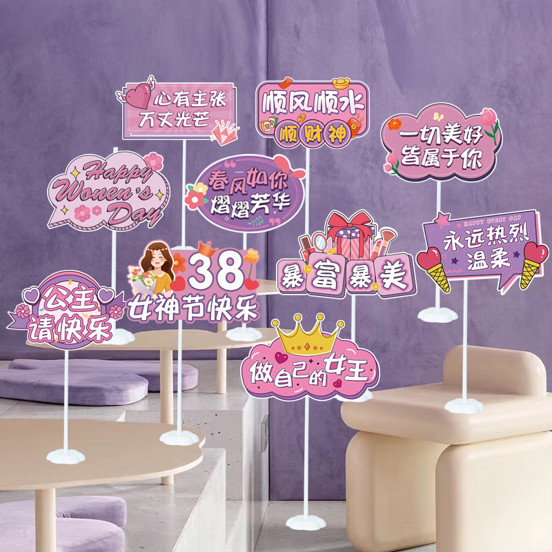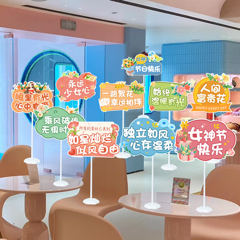 三八女神节桌面立牌摆件餐厅店铺装饰38妇女节珠宝店氛围场景布置
