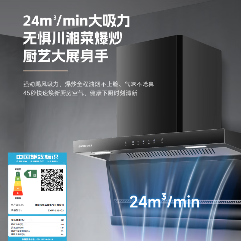 中国燃气中燃宝油烟机Q3顶侧双吸家用静音大吸力超薄烟机烟灶套装