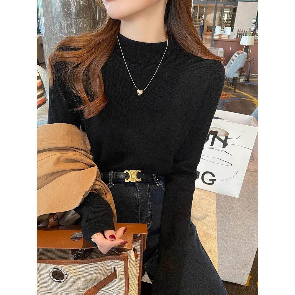 灰色半高领打底衫女秋冬修身软糯不起球毛衣洋气内搭针织衫上衣