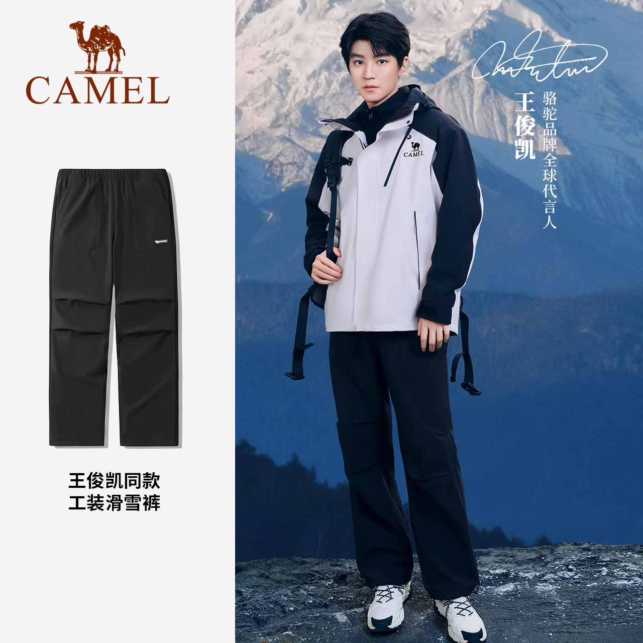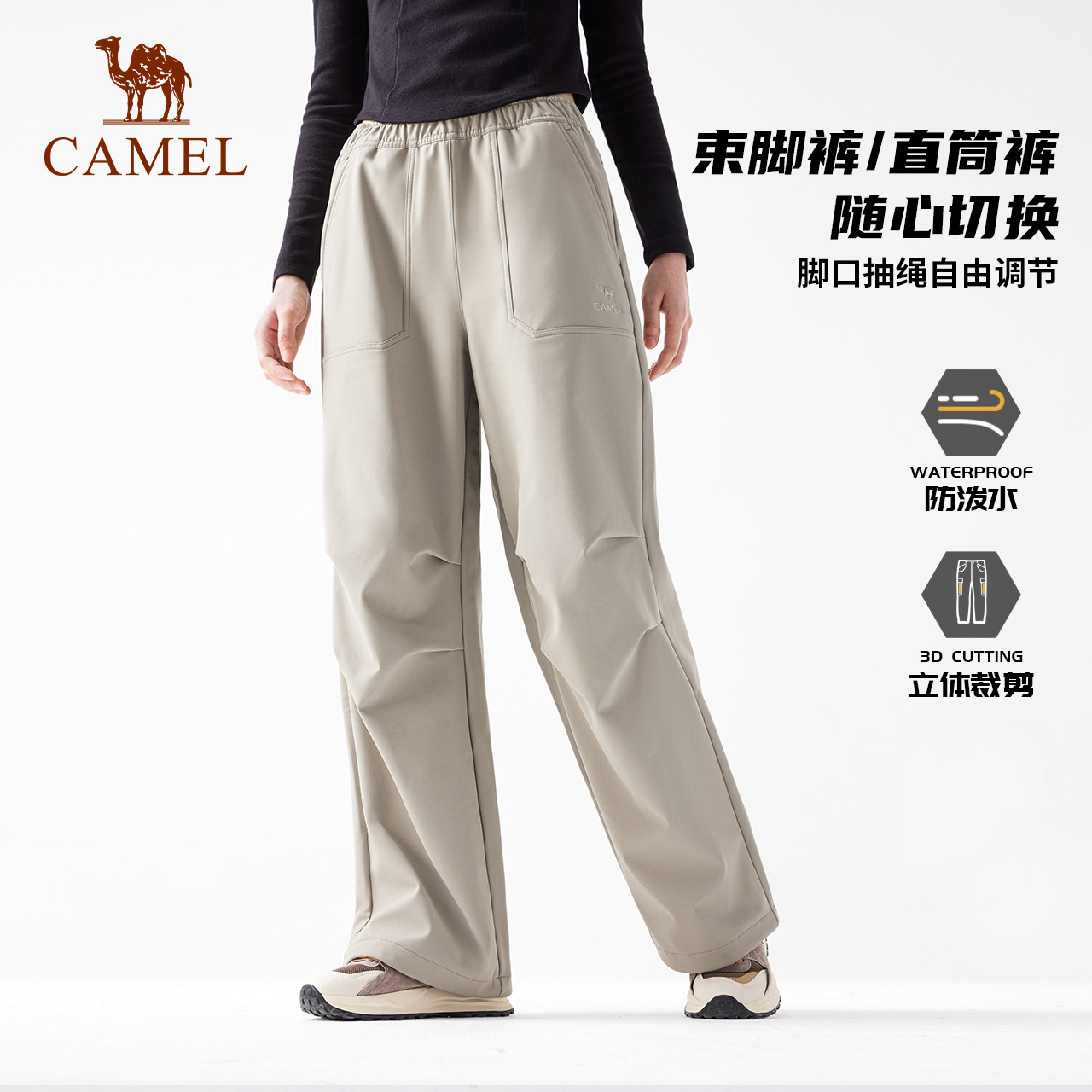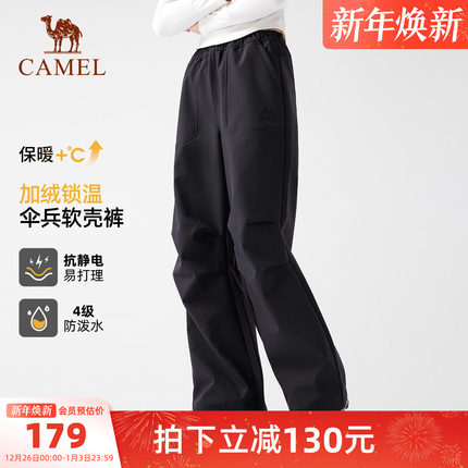 [王俊凯同款]骆驼户外软壳裤男防风防水伞兵裤加绒工装冲锋登山裤