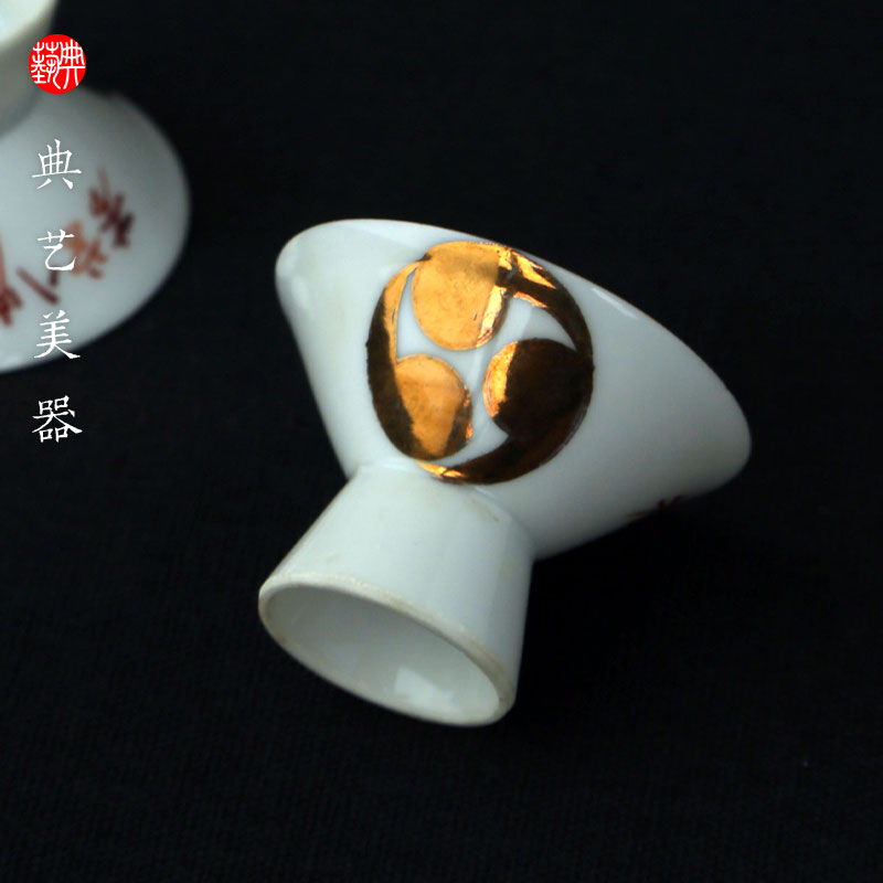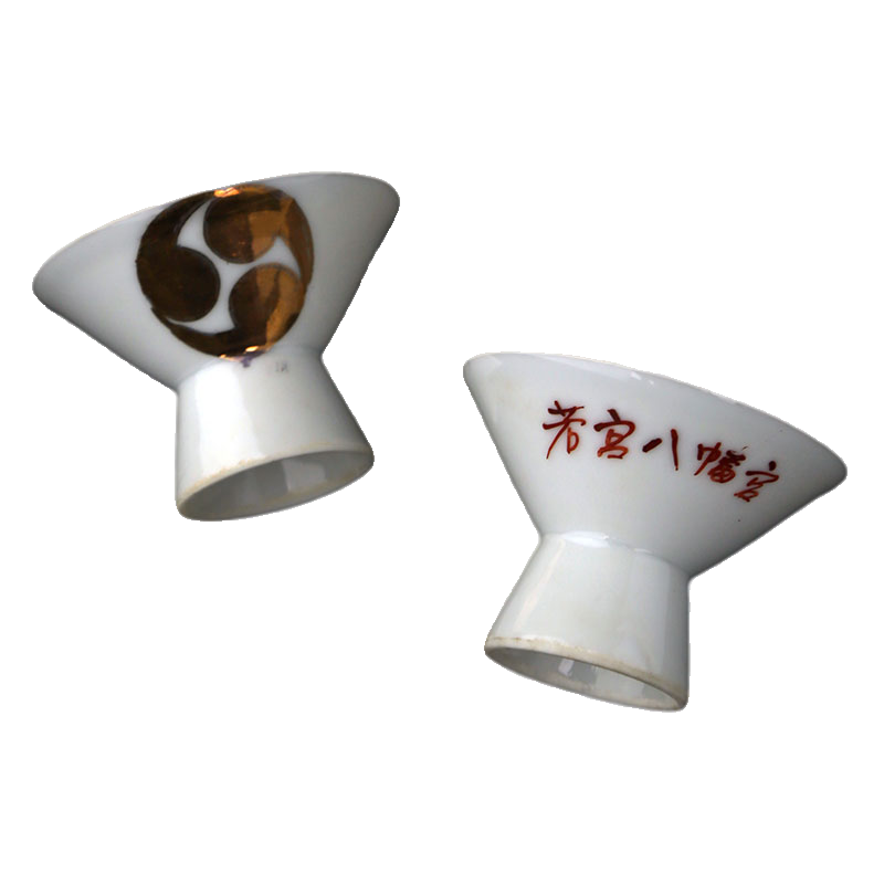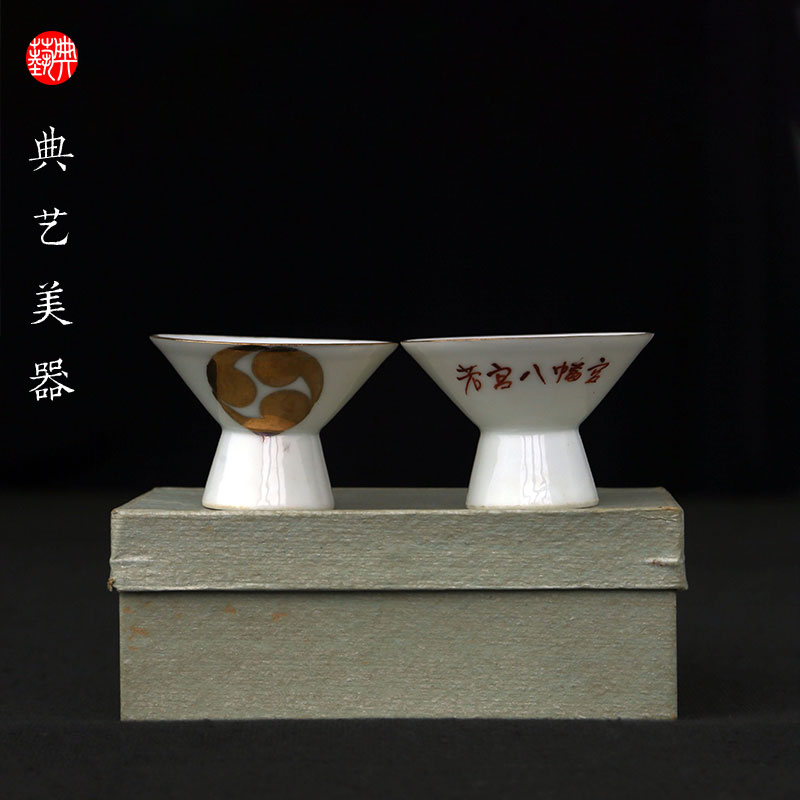 日本九谷烧超薄胎寿杯茶酒杯描金手写若宫八幡宫陶器神社纪念款