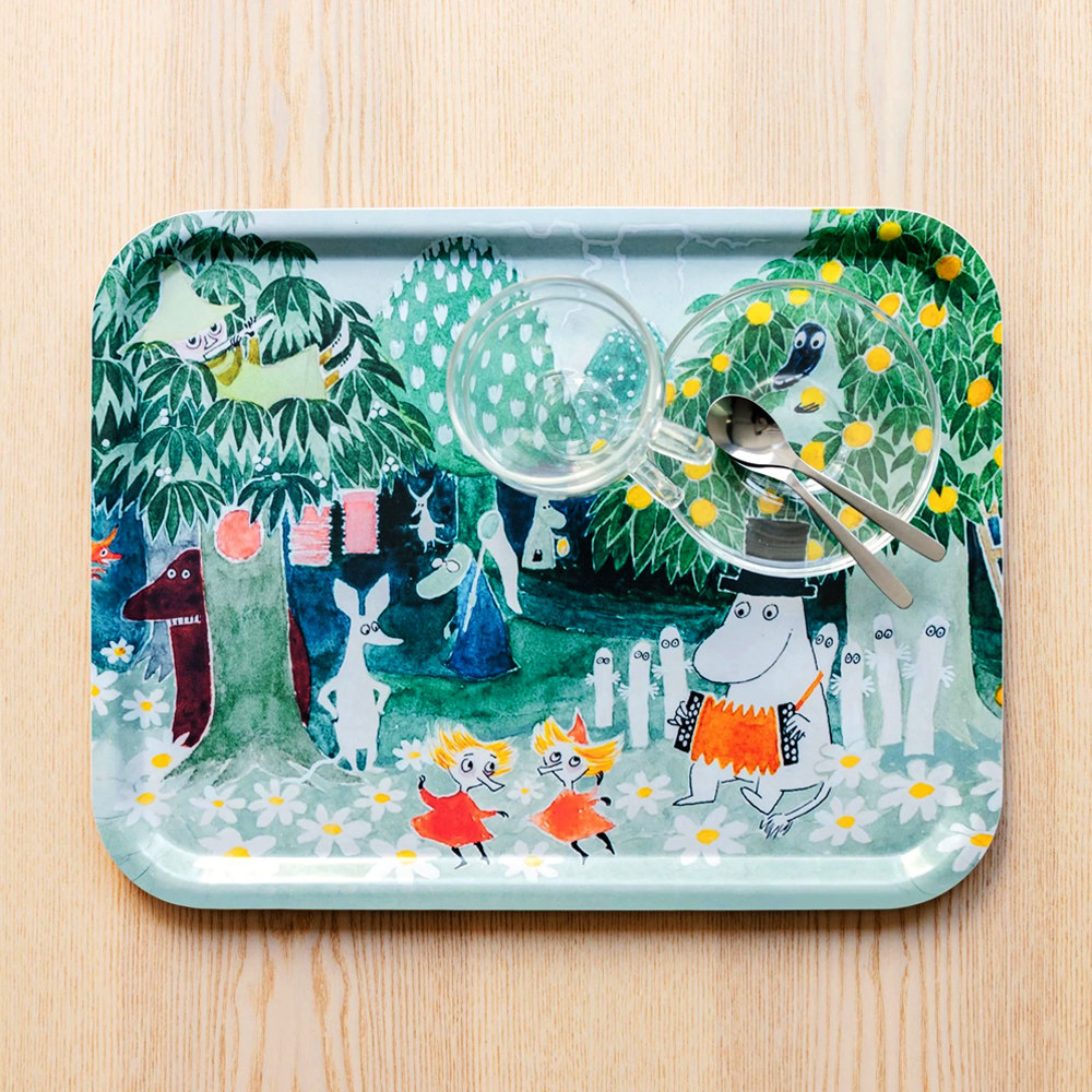 瑞典进口optodesign姆明餐用木托盘长方形防水茶盘果盘杯子收纳盘