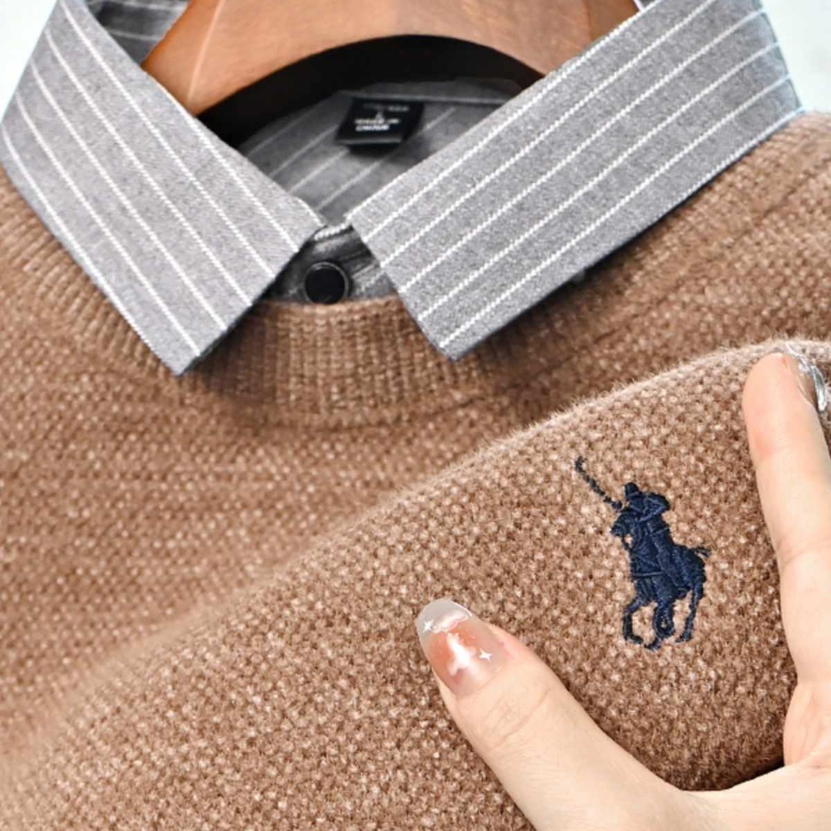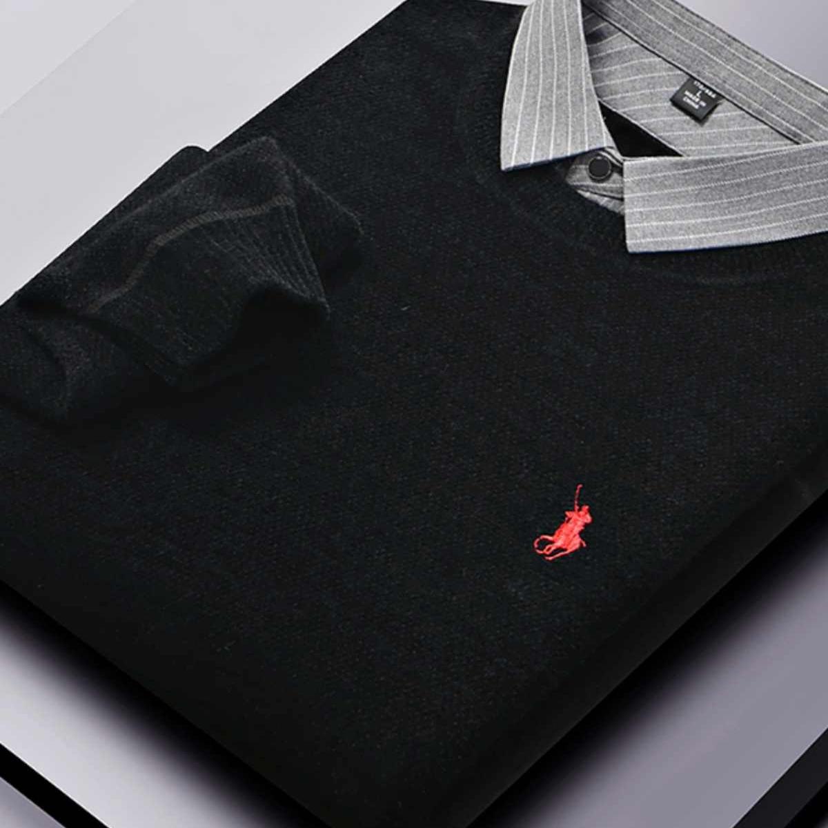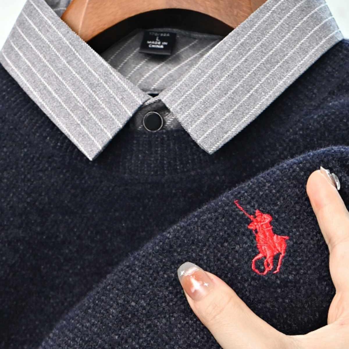 高档一体绒假两件毛衣男士