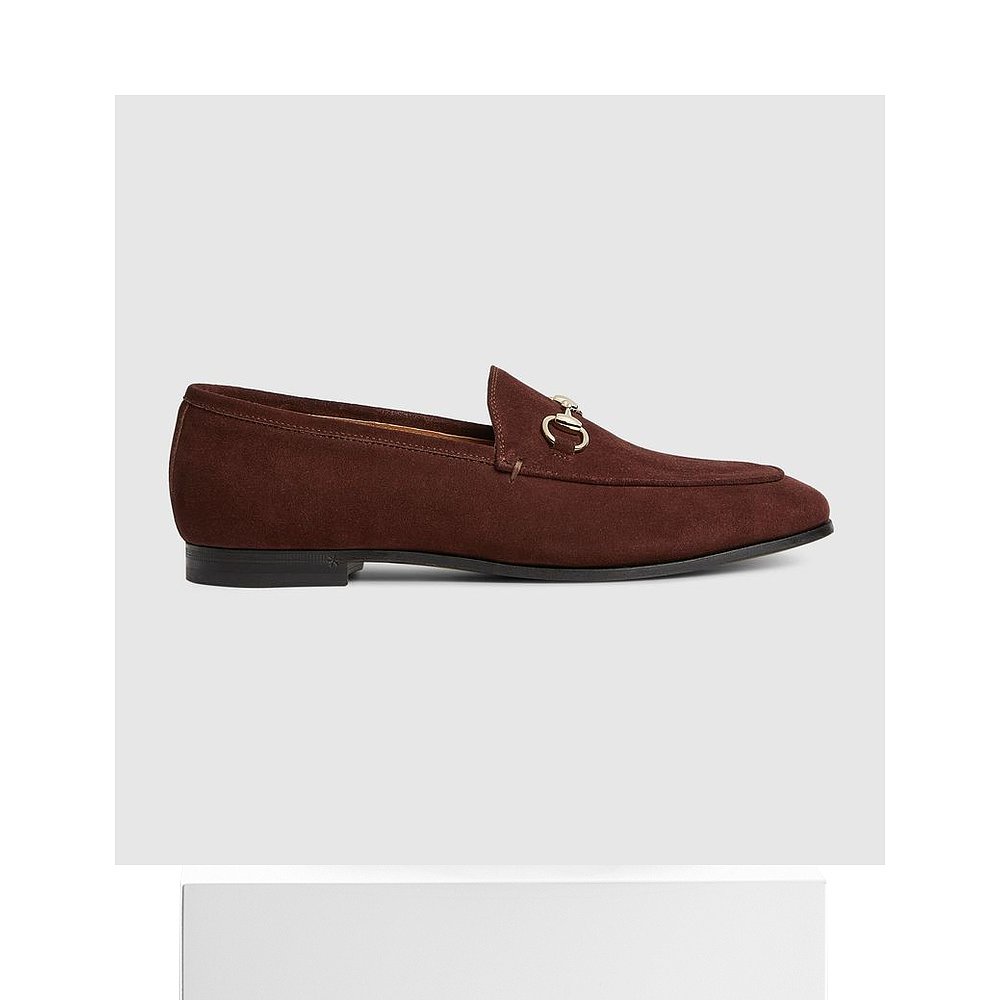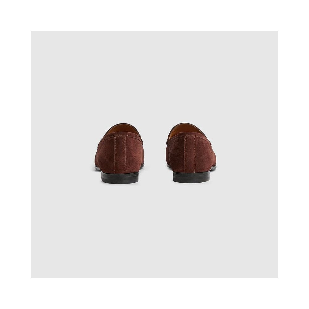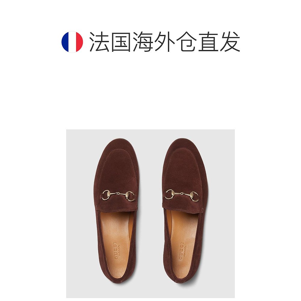 自营欧洲直邮Gucci古驰Jordaan系列女士深棕色绒面革女士乐福鞋