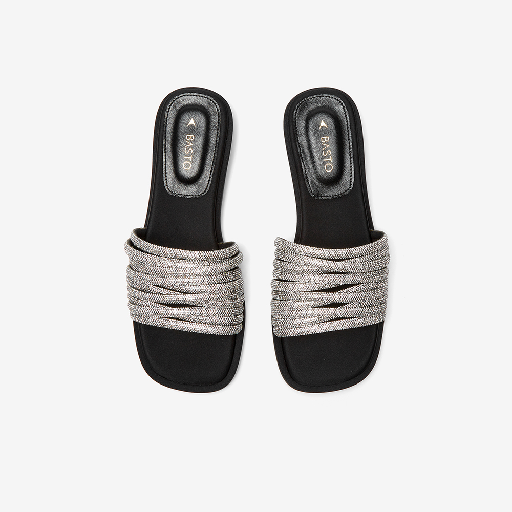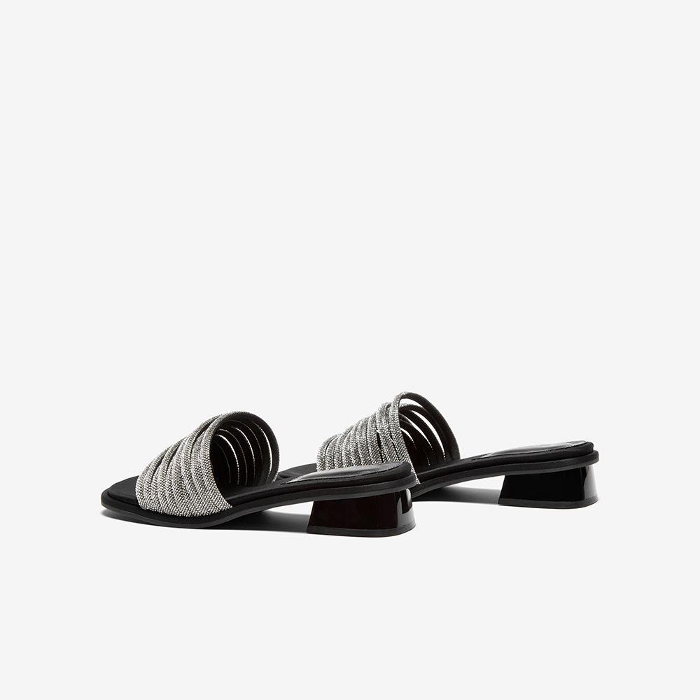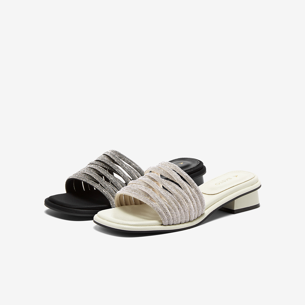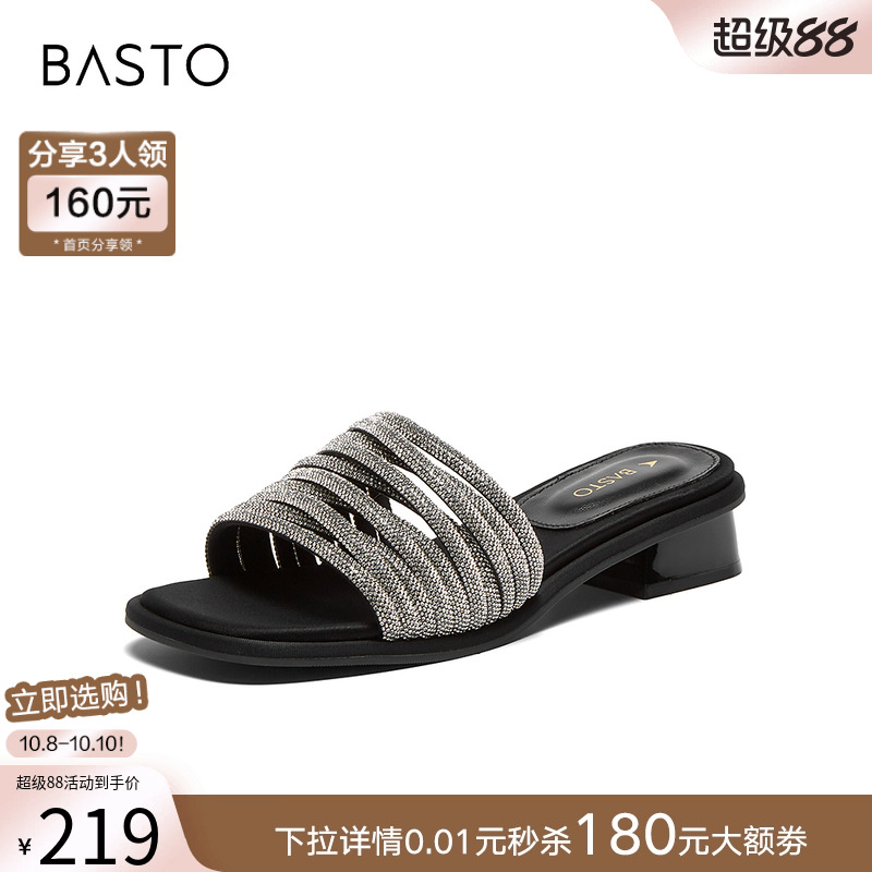百思图夏商场新款时尚气质闪钻一字拖粗跟女外穿拖鞋A5251BT4