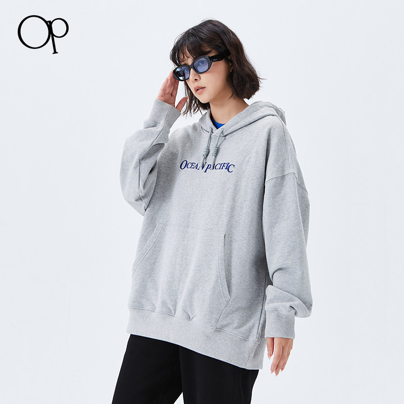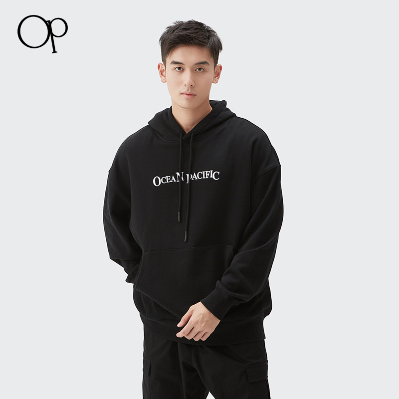 ocean pacific情侣op卫衣男女潮牌运动宽松黑色连帽外套oversize