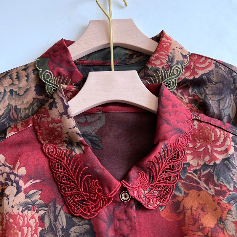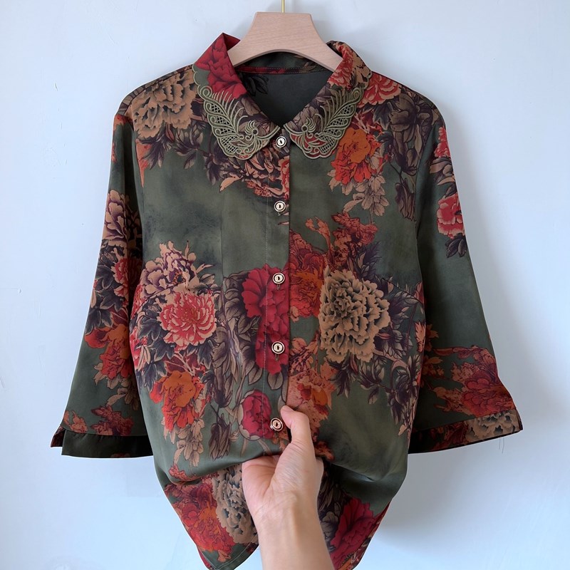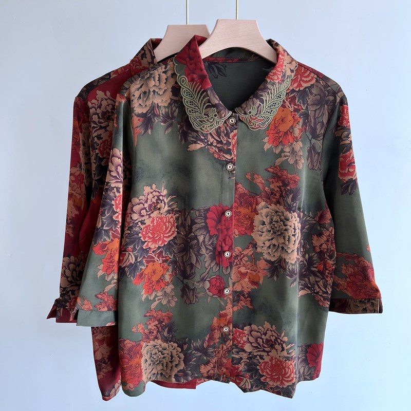奶奶夏装真丝中袖衬衫中老年女士洋气妈妈薄款衬衣老太太春秋上衣