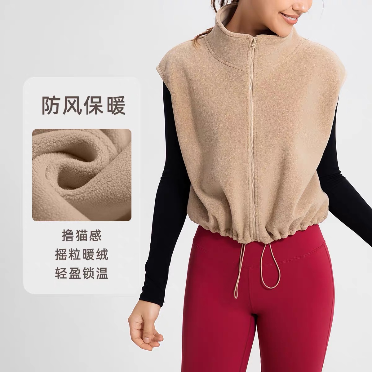 加厚加绒保暖拉链立领瑜伽外套户外跑步健身服女显瘦运动马甲秋冬