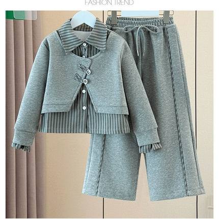 女童春秋套装2025新款洋气儿童秋装娃娃领衬衫中大童阔腿裤两件套