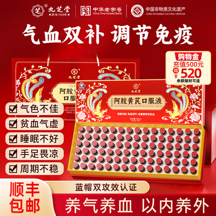 九芝堂阿胶黄芪口服液浆女生贫血补气养血送礼免疫礼盒正品旗舰店