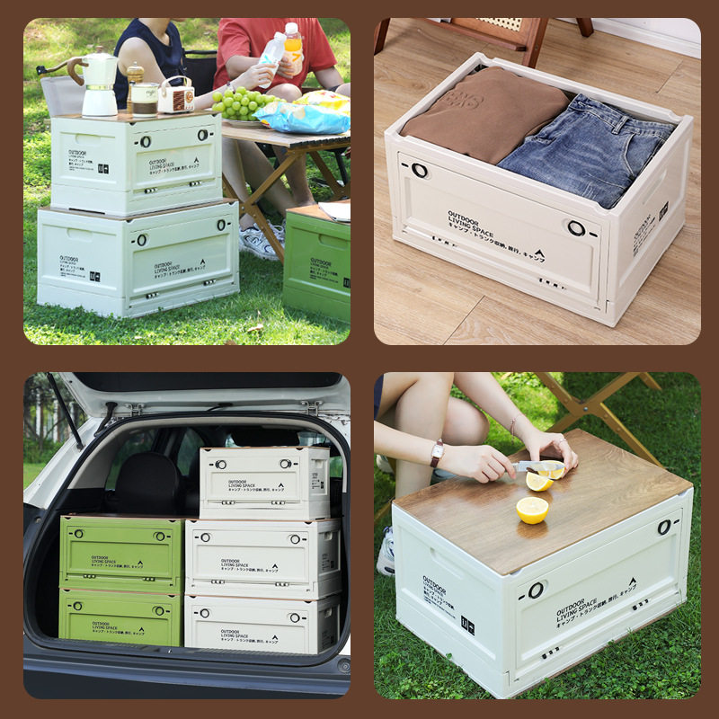 户外露营收纳箱车载后备箱储物箱野营木盖折叠箱侧开门塑料整理