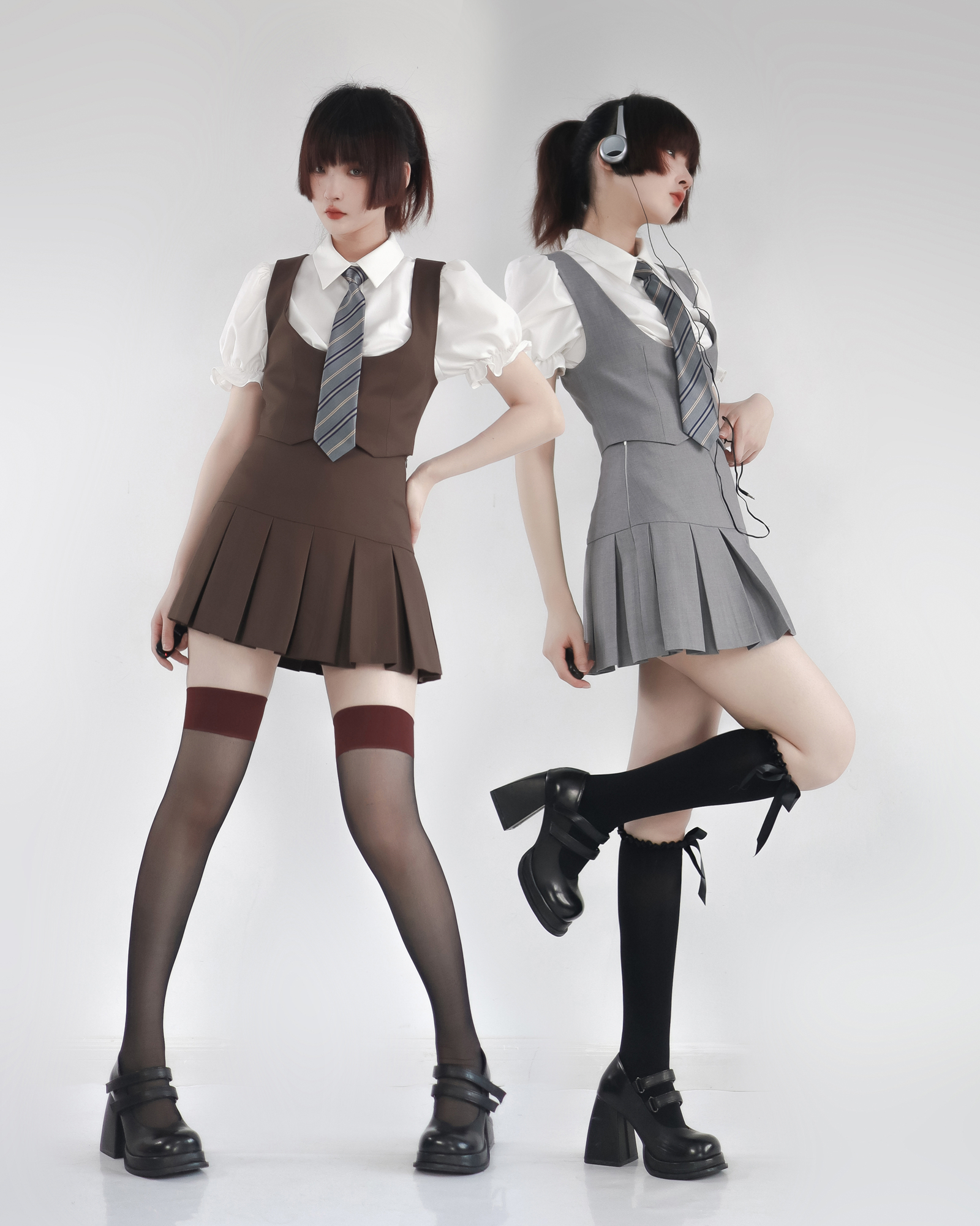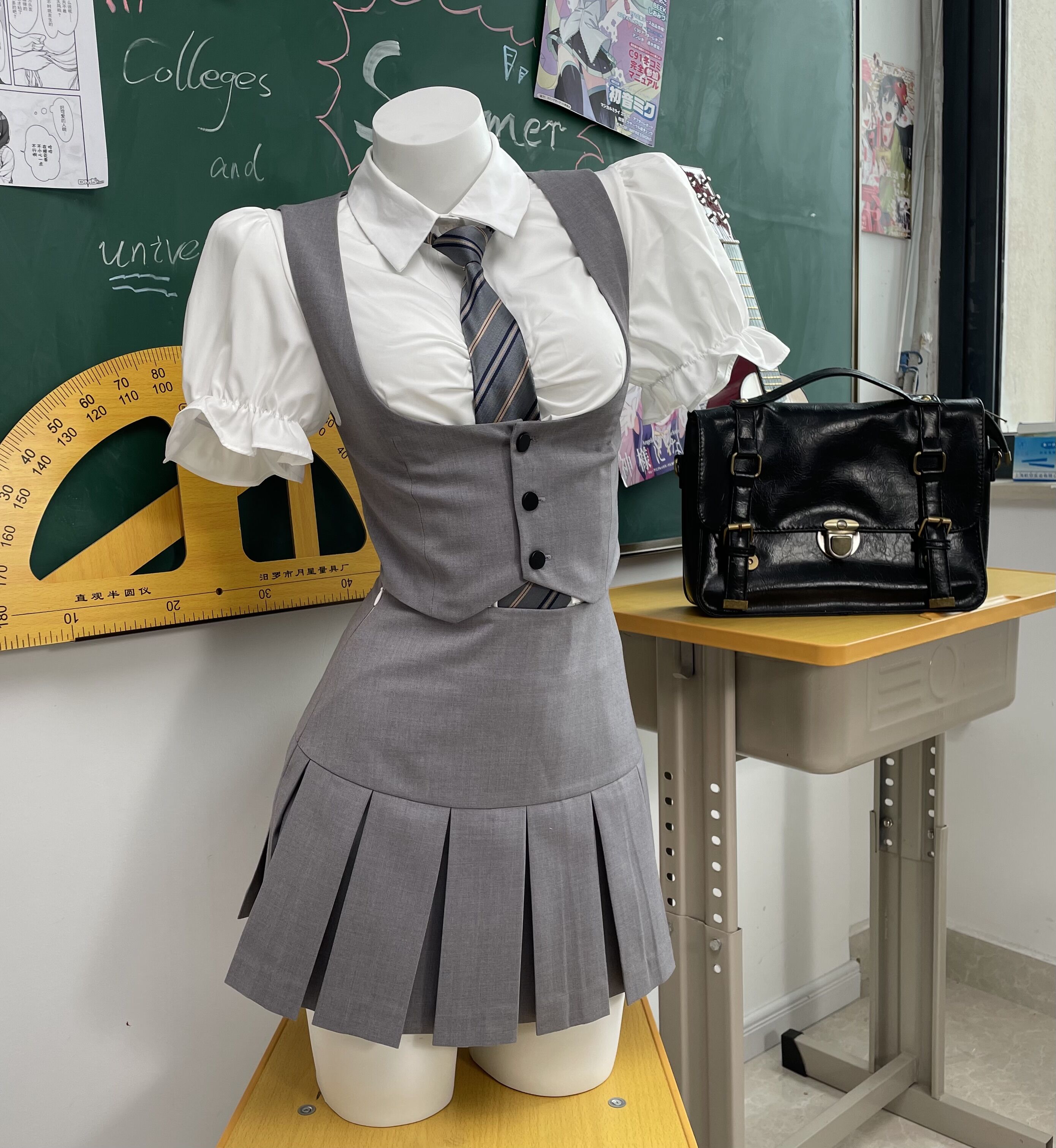 (少量现货)仲春二四 新乌龙女校 背心马甲百褶裙衬衫制服套装女