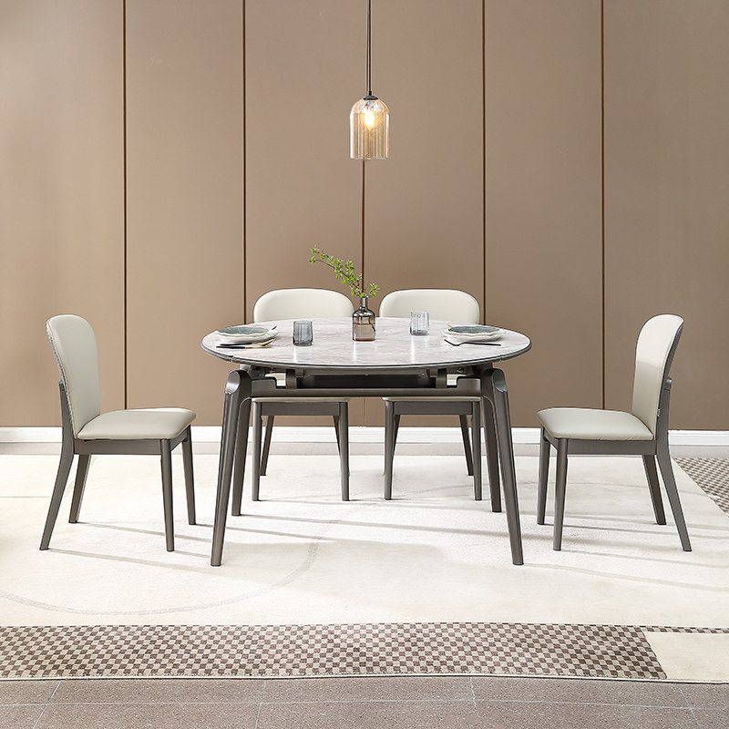 全友家居 门店同款 FD0027 圆形折叠伸缩功能岩板台面餐桌椅组合