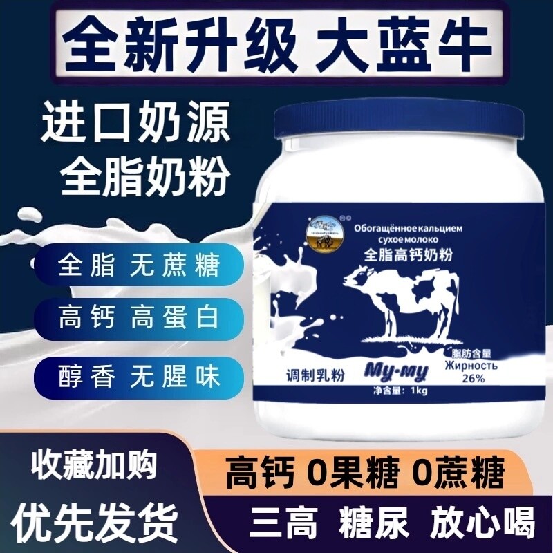 进口奶源全脂高钙奶粉中老年俄罗斯成人无蔗糖蓝牛原装官方旗舰店