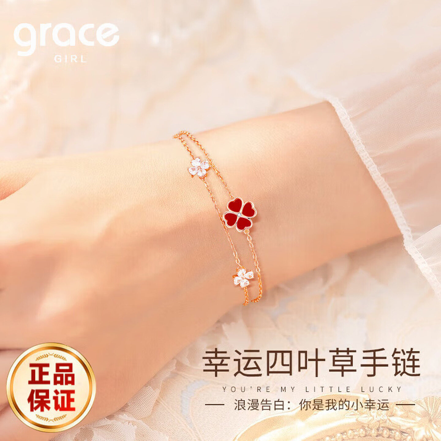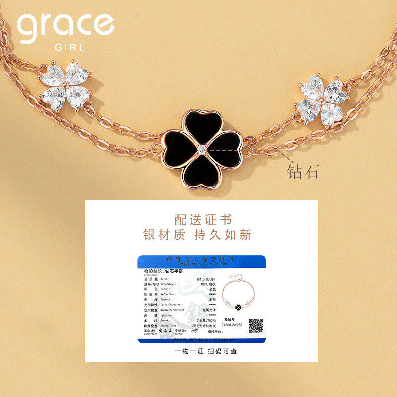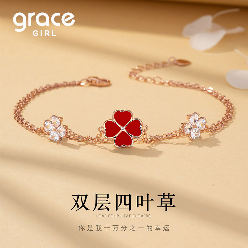 Grace Girl钻石四叶草手链轻奢小众精致叠戴送闺蜜女朋友生日礼物