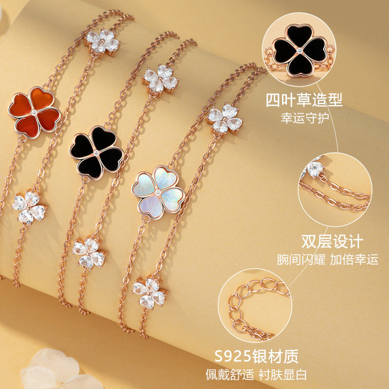 【礼物】幸运钻石四叶草银手链