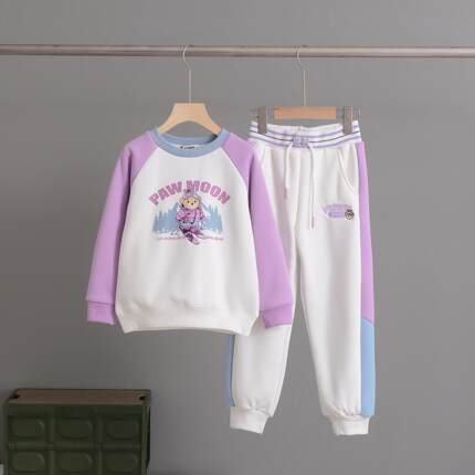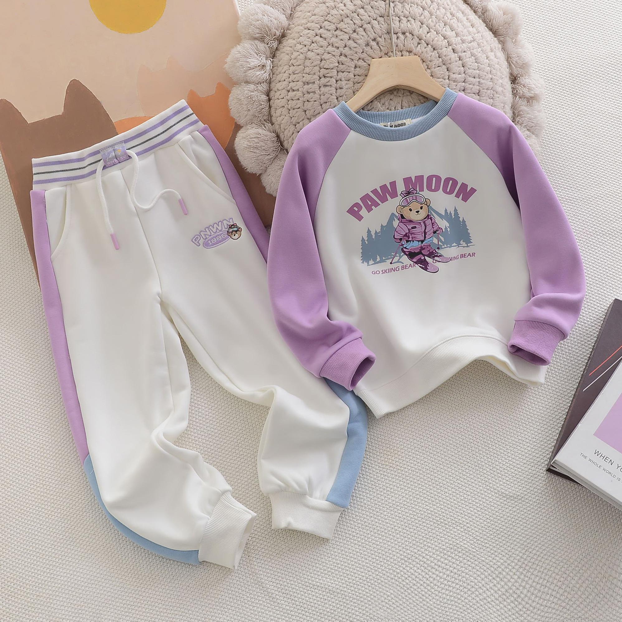 小熊童装2024秋冬款女童圆领加绒洋气卫衣中大童保暖休闲裤子儿童