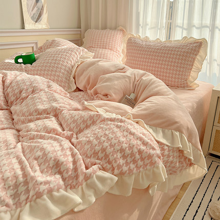 2024新款牛奶绒四件套加绒加厚冬季保暖床上被套珊瑚绒法兰绒床单