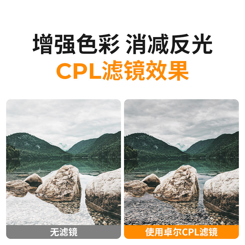 卓尔滤镜套装NANO-K系列UV+CPL+ND4 67/77/43/46/49/58/62/72/95/82mm适用佳能尼康富士索尼单反微单镜头滤镜
