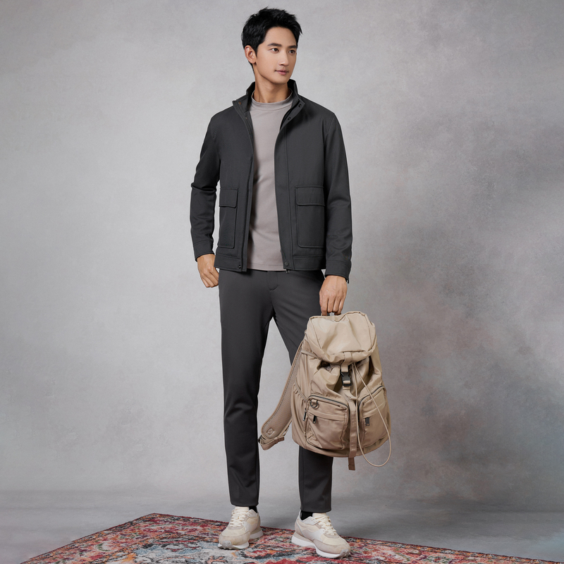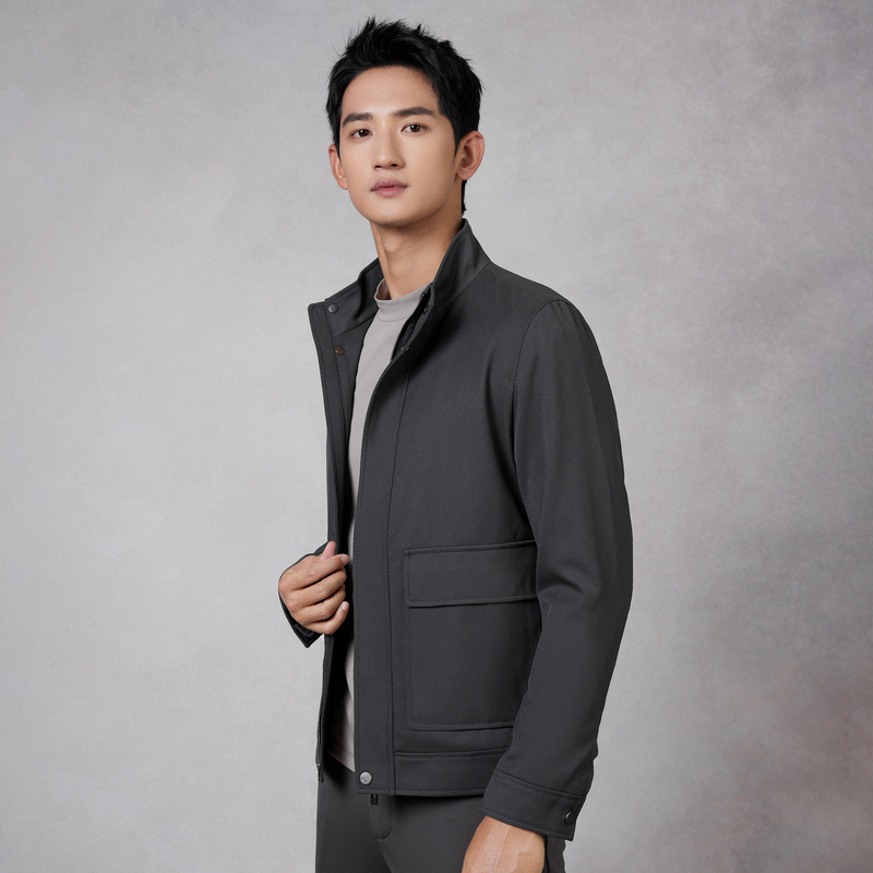 堡尼秋冬新品商务净色夹克立领羊毛混纺休闲茄克外套男FO640141B
