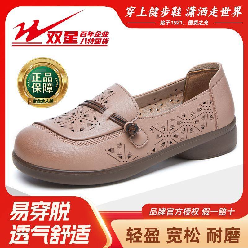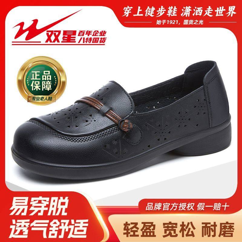 双星八特妈妈鞋洞洞鞋中老年春夏季单鞋防滑软底女款透气皮鞋凉鞋