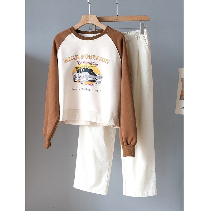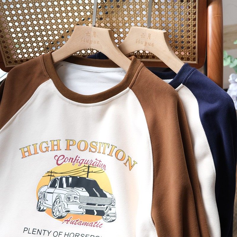 撞色美式复古卡通图案显瘦卫衣