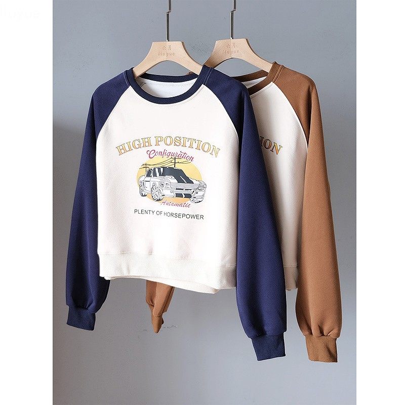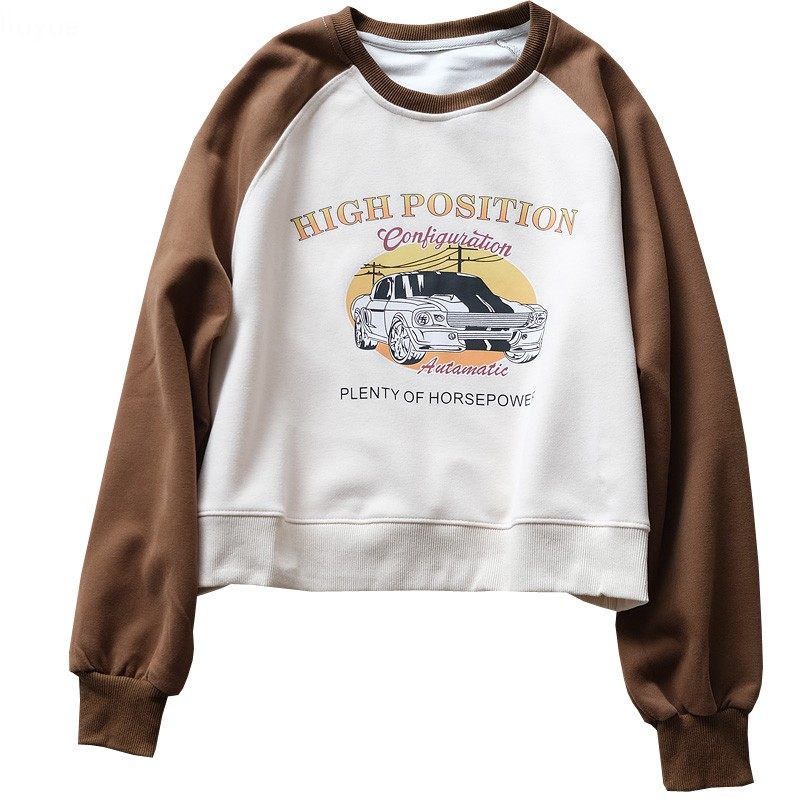 六月22163美式撞色卫衣2022年秋冬新品螺纹领卡通图案显瘦短上衣