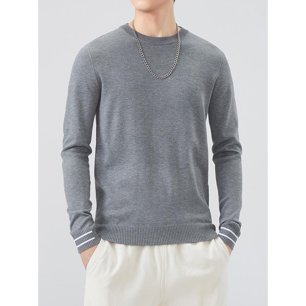 以纯圆领毛衣男士秋冬修身内搭套头打底衫潮流男装休闲针织衫