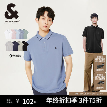 杰克琼斯男装秋季新款polo衫男士式商务休闲翻领纯色短袖T恤白色