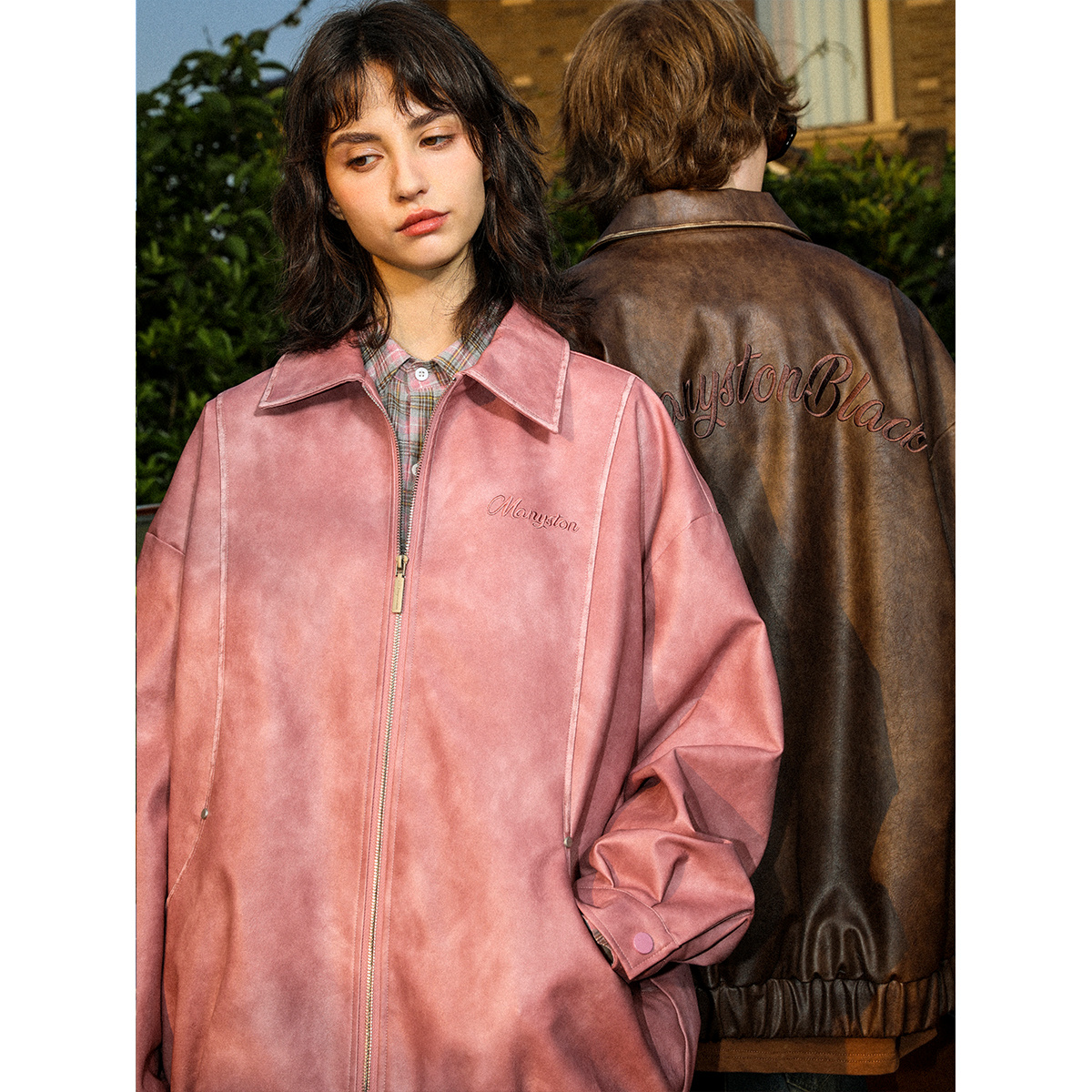 MANYSTON美式高街PU皮夹克男款春秋季潮牌街头情侣装休闲外套