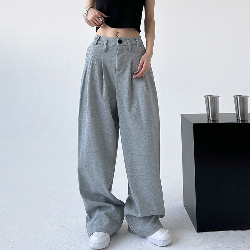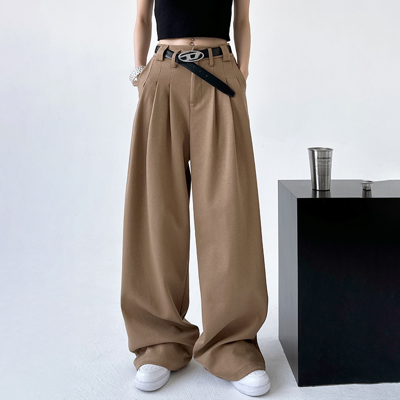 高腰西装裤显瘦女春秋季2025新款宽松直筒阔腿裤垂感拖地长裤子