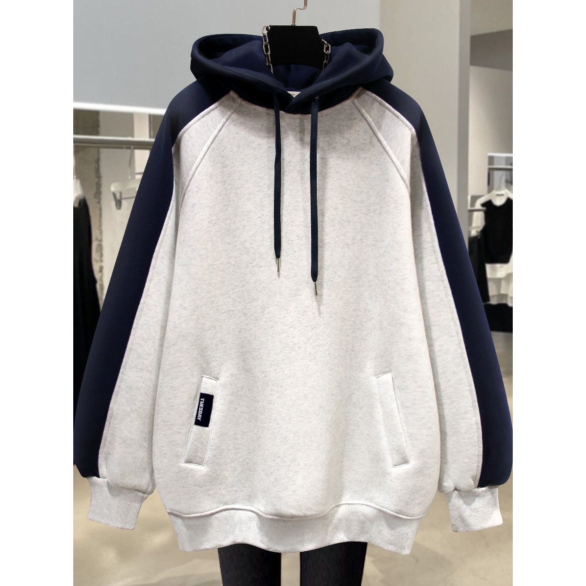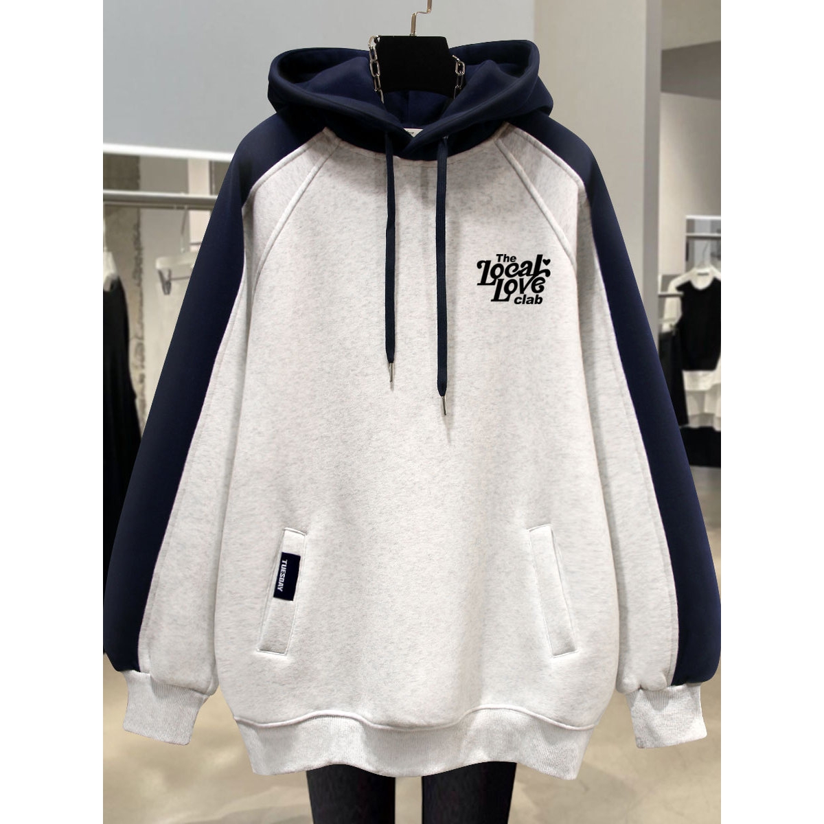 撞色连帽上衣2025新款春秋冬薄款字母小爱心外套中长款卫衣女加绒