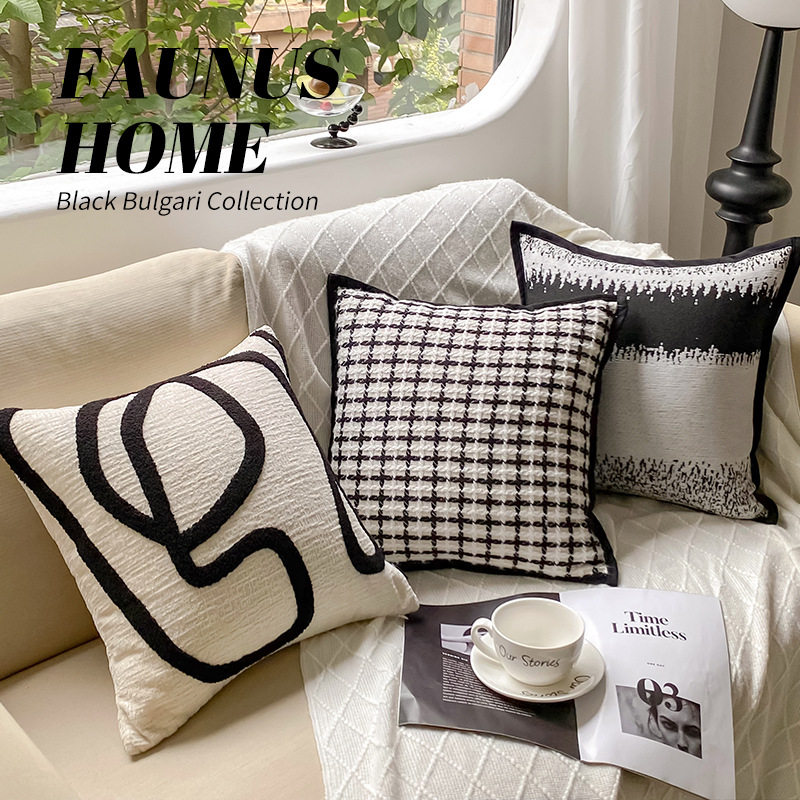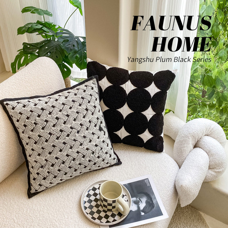 雅器一茶周边简约奶油轻奢风黑白复古毛绒抱枕兔毛绒沙发靠垫枕套