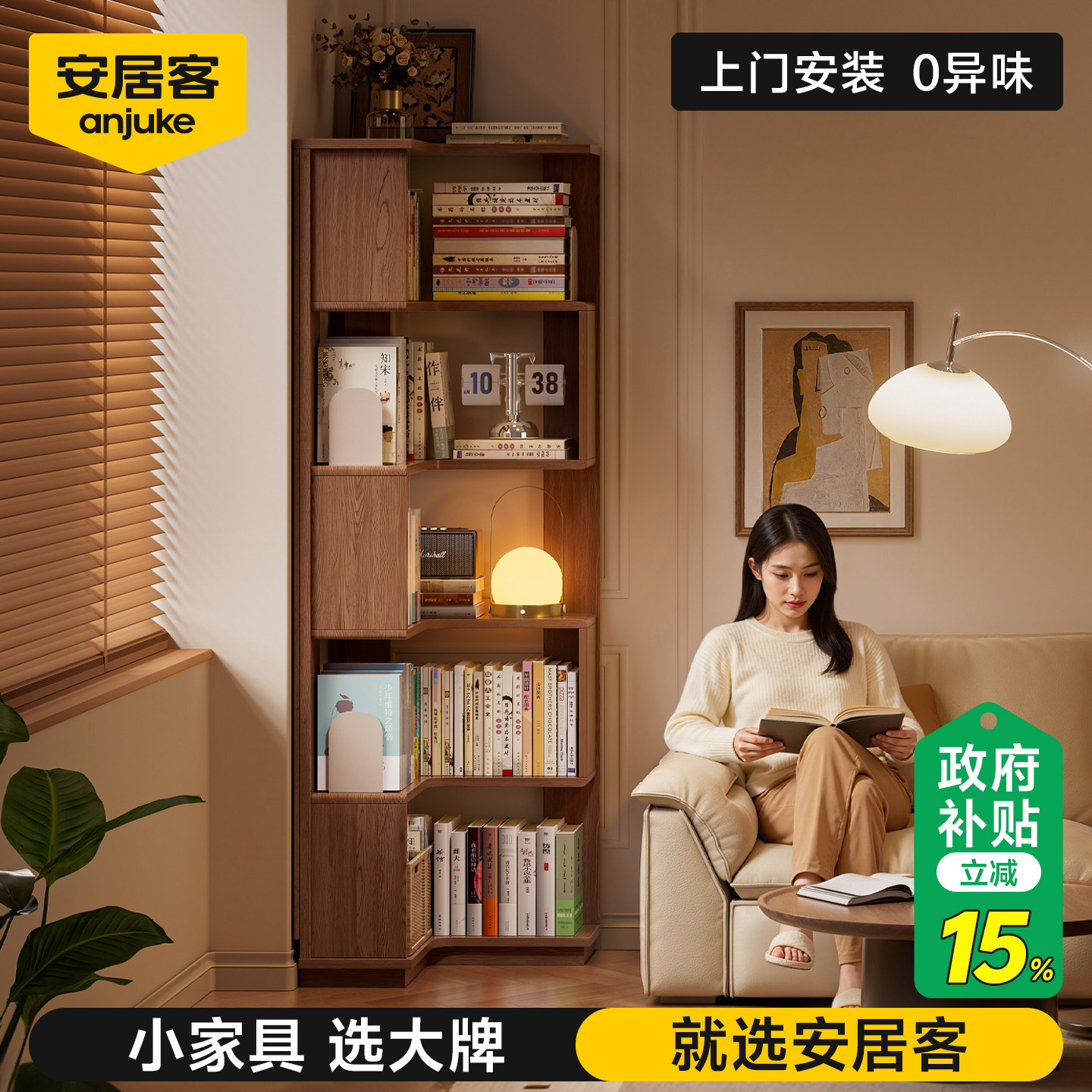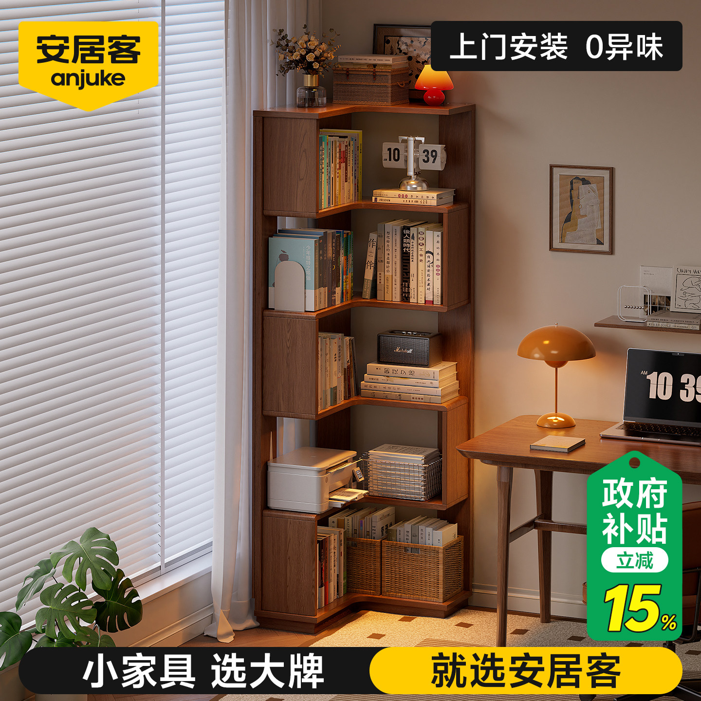 环保0异味!安居客实木转角书架