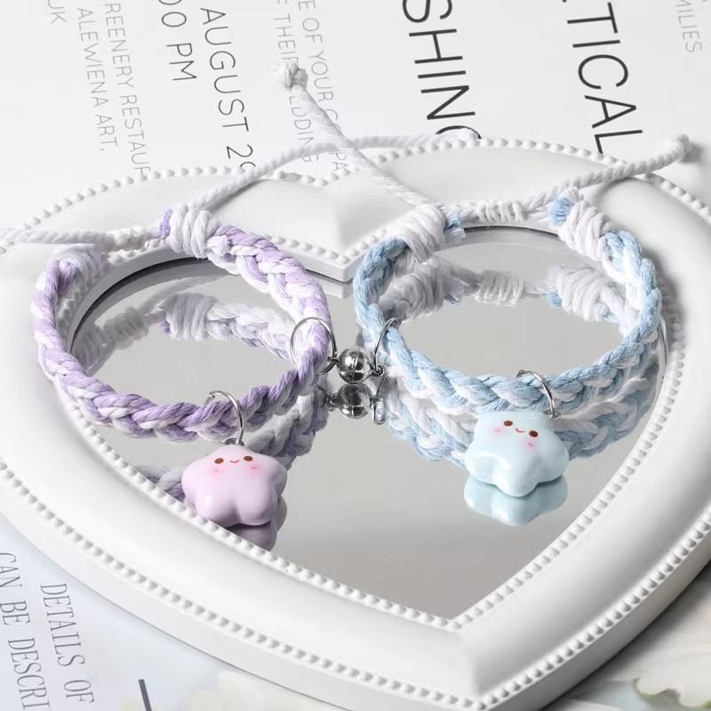 原创可爱笑脸星星编织绳可调节情侣磁吸手绳高颜值闺蜜手链送男友
