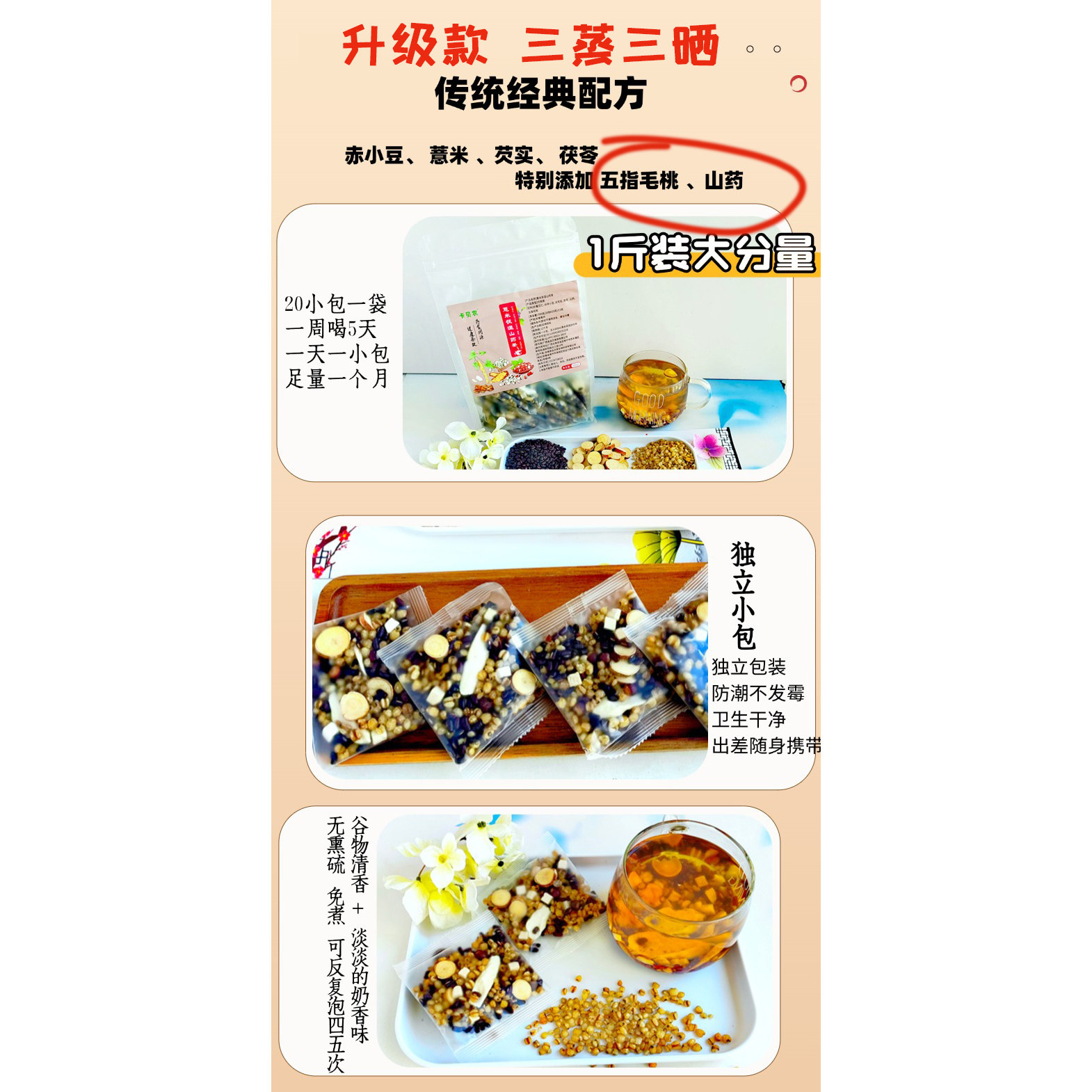 三蒸三晒赤小豆薏米芡实五指毛桃茯苓熟茶红豆薏米养生花茶湿湿茶