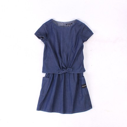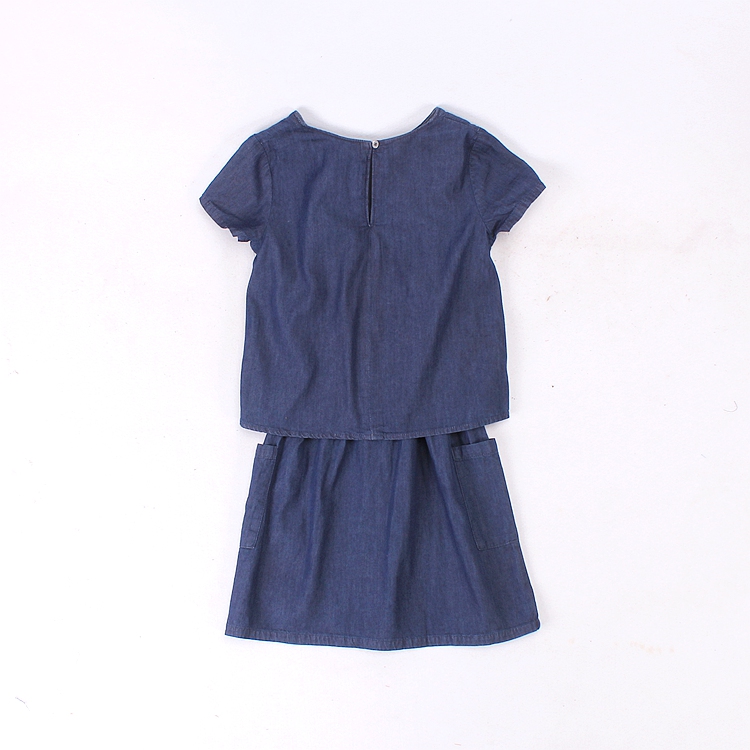 女童短袖牛仔裙 外贸童装夏季新款女孩牛仔连衣裙亲子装