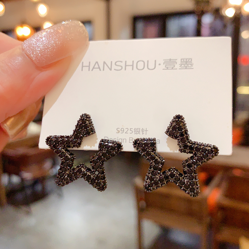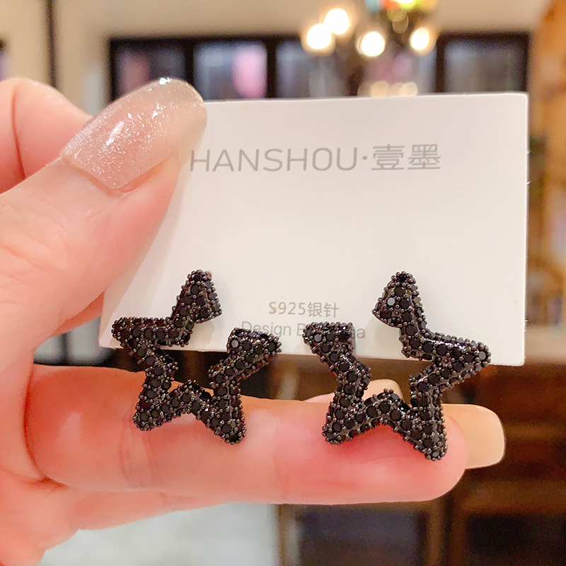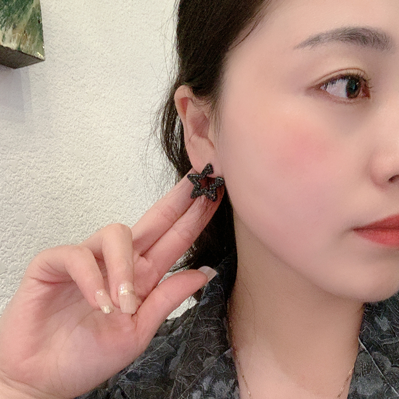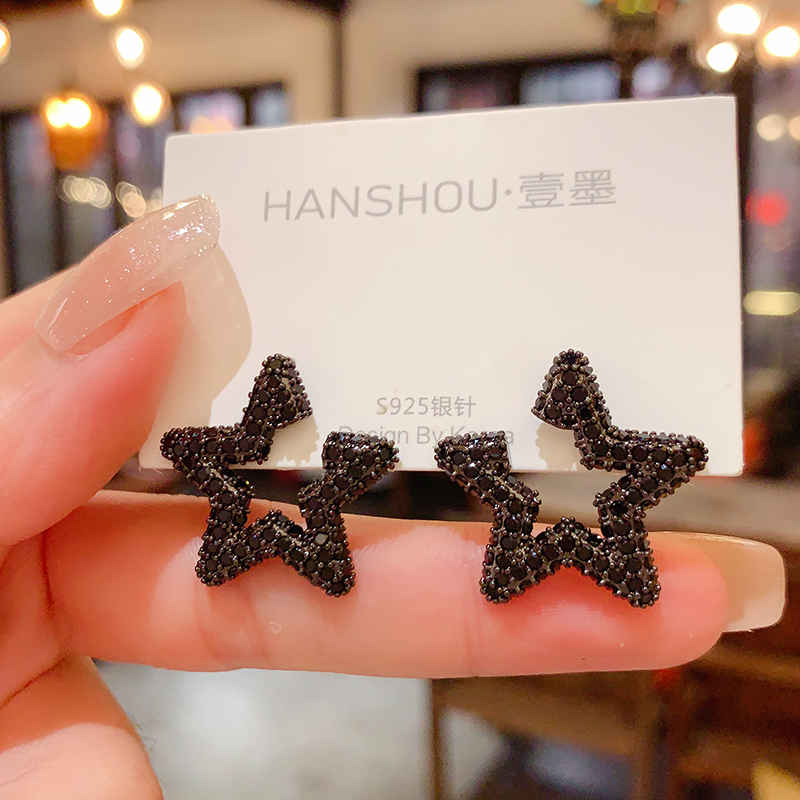 高级感奢华气质黑色星星耳钉女
