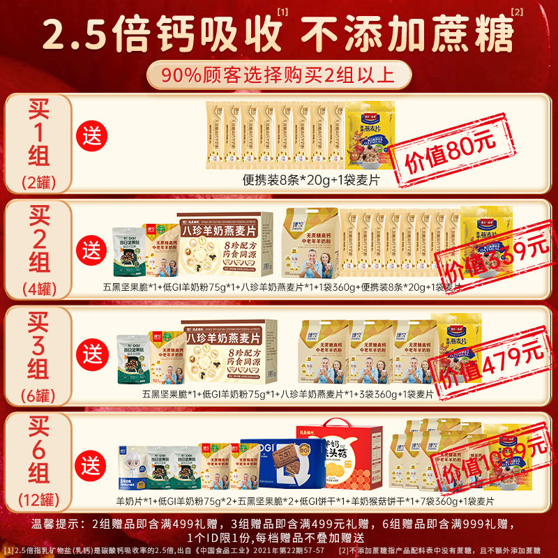 2罐臻牧无蔗糖高钙中老年羊奶粉
