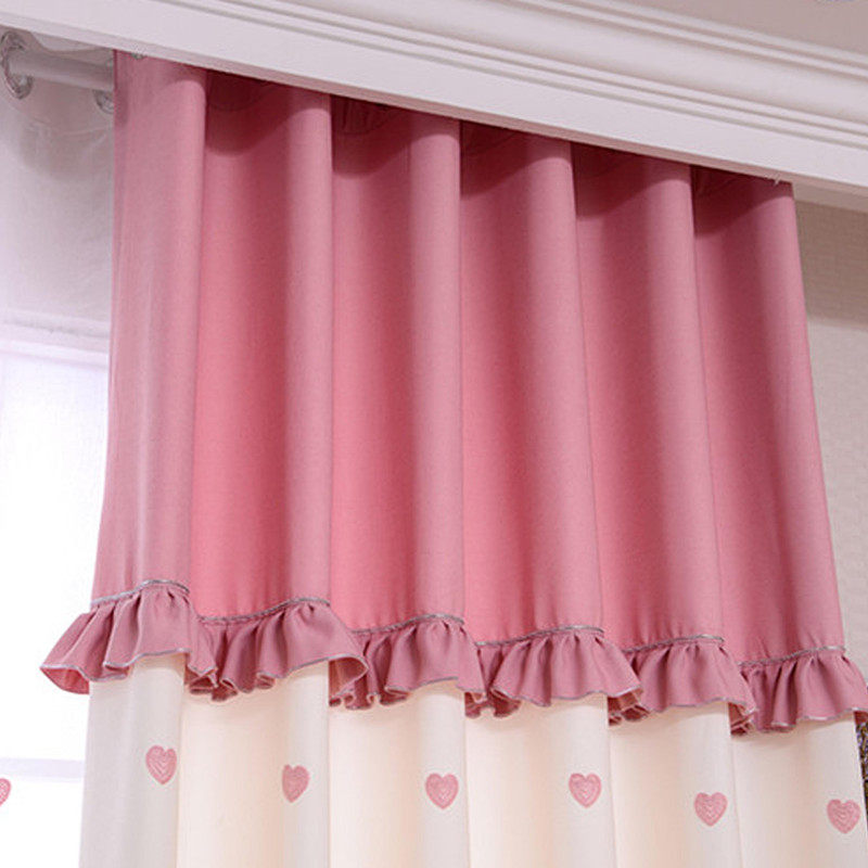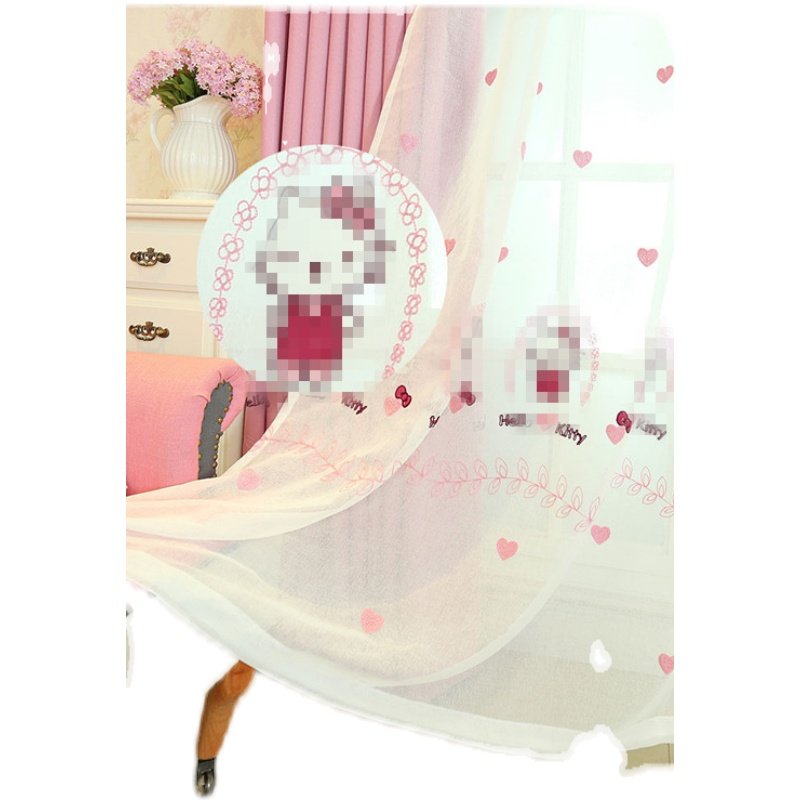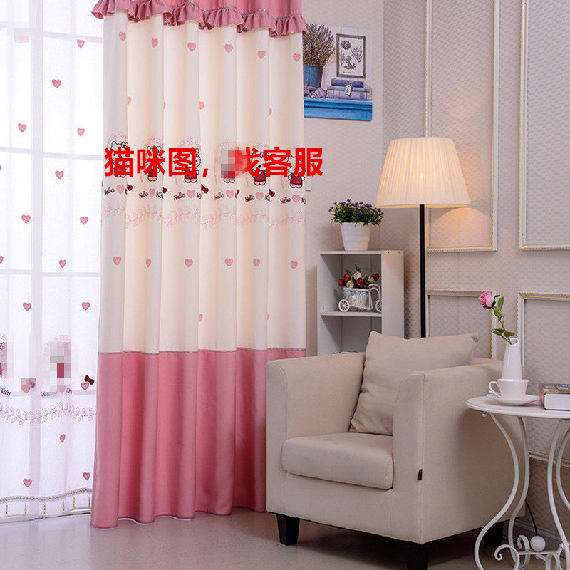 韩式粉色女孩卧室飘窗儿童KT猫棉麻成品遮光绣花窗帘田园公主风